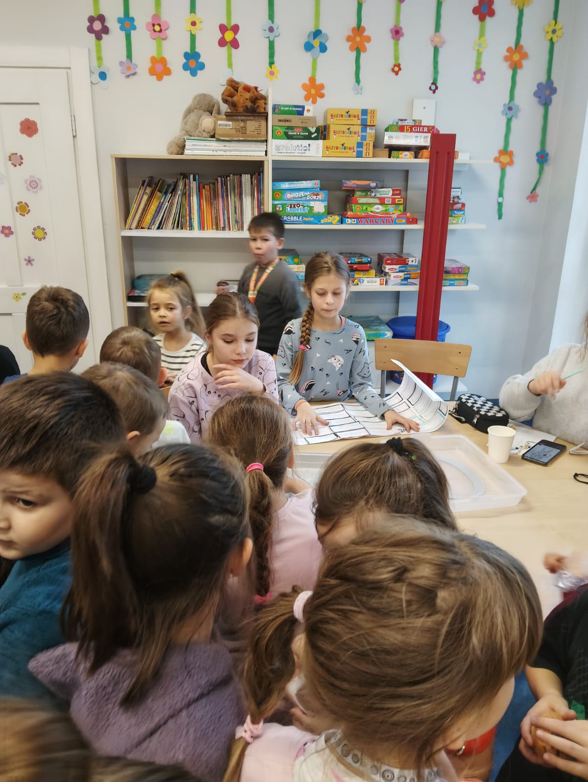 Miesiąc listopad to czas wróżb andrzejkowych. 28 listopada 2025 r. nasza świetlica zamieniła się w magiczny salon wróżb. Zabawy przepowiadające przyszłość poprzedziły: informacje o Świętym Andrzeju, przygotowanie wróżb i elementów potrzebnych do zabawy oraz wykonanie gazetki z prac naszych uczniów.