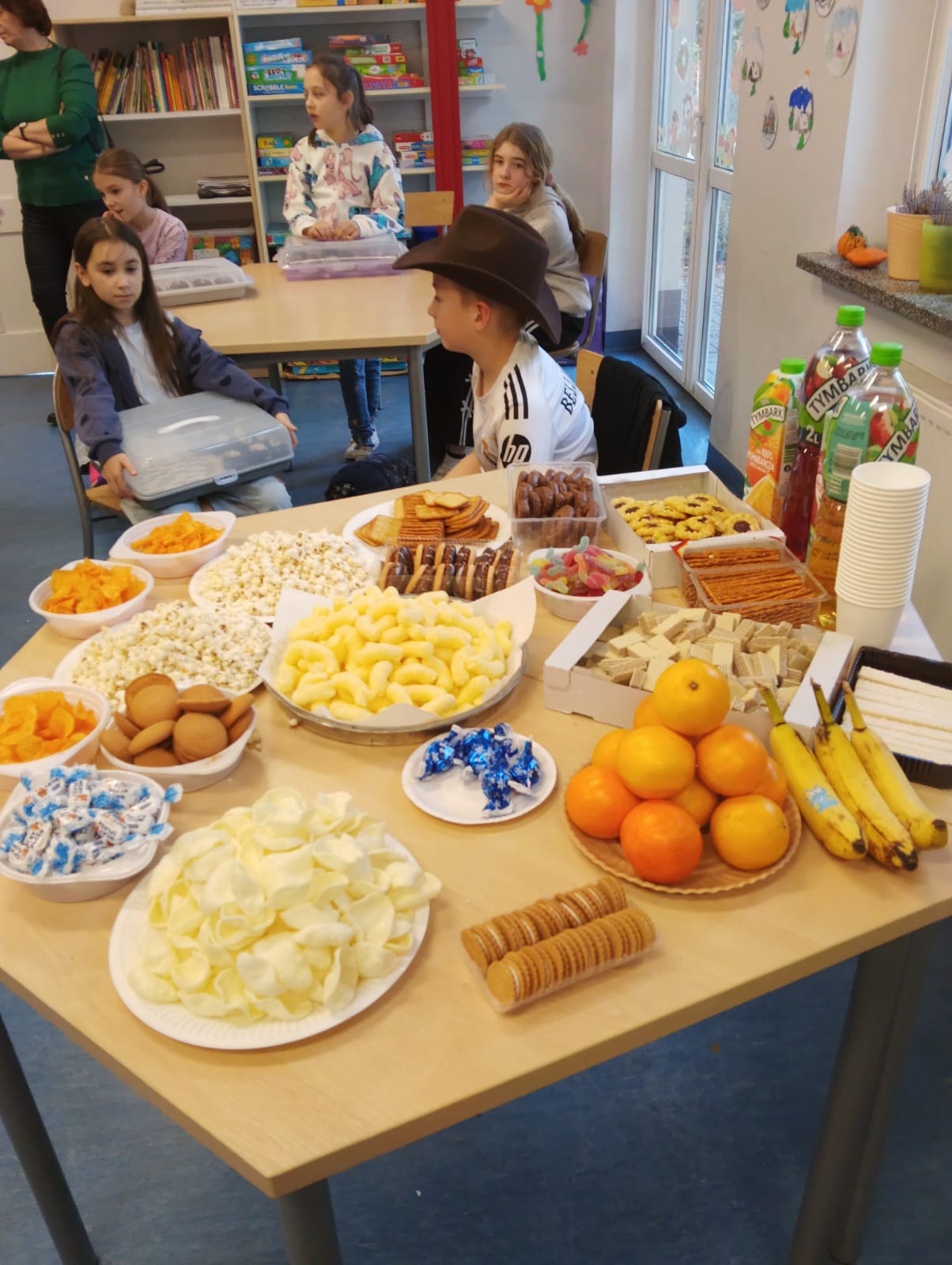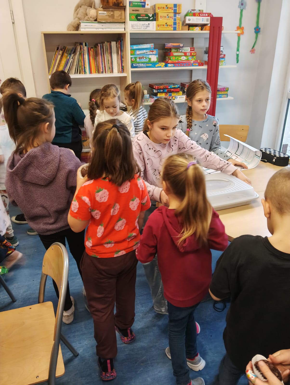 Dzieci z klas trzecich przygotowały wróżby. Były to m.in. serduszka z imionami chłopców i dziewczynek, nazwy zawodów, wróżby z butów oraz dotyczące tego, co nas czeka i czego powinniśmy się wystrzegać, jak także babeczki z niespodziankami. Te ostatnie cieszyły się największą popularnością. Po wróżbach na dzieci czekał poczęstunek przygotowany przez rodziców. Wszyscy świetnie się bawili, a wróżby traktowaliśmy z przymrużeniem oka. Dziękujemy rodzicom za zaangażowanie w przygotowanie naszej zabawy.