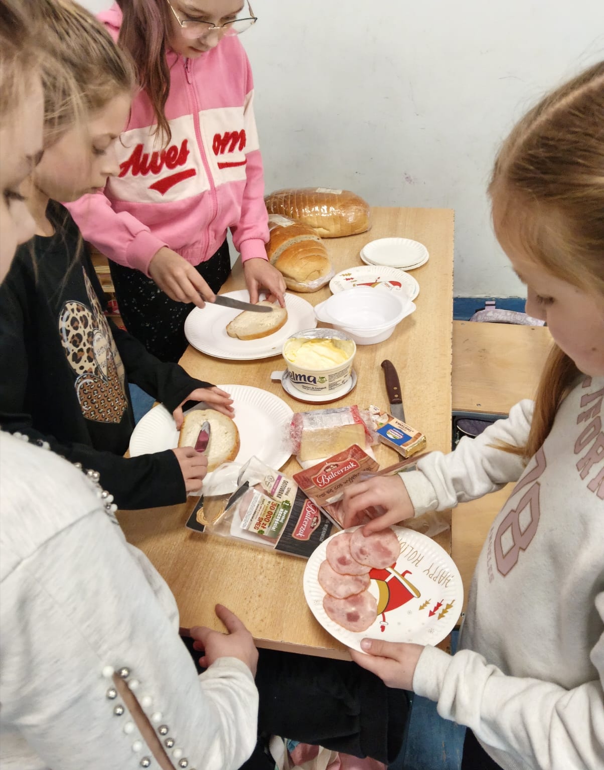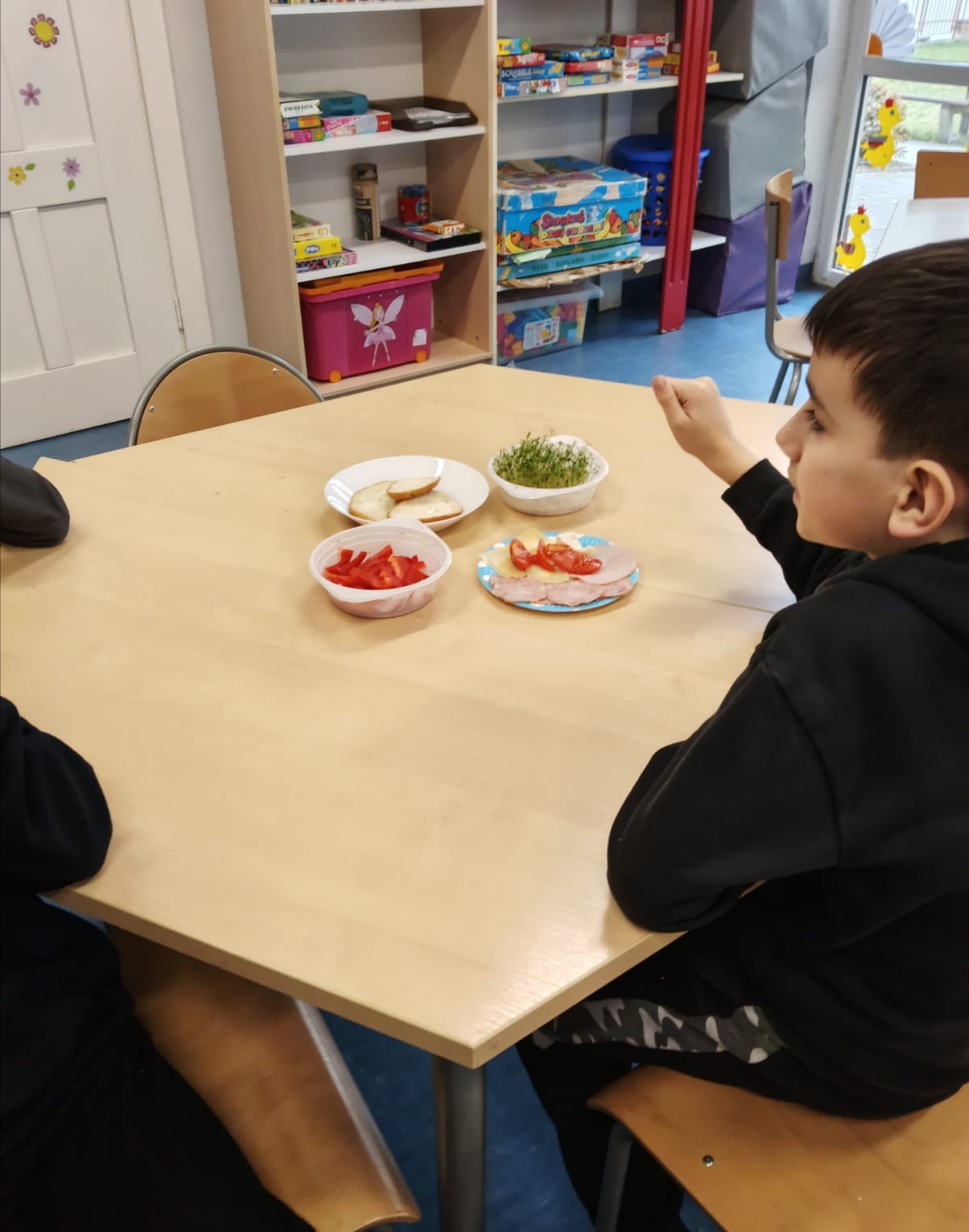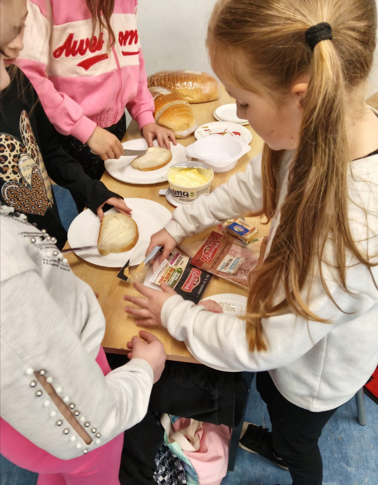 Do przygotowywania wiosennych kanapek wykorzystano wyhodowane uprzednio kiełki rzeżuchy, które wysiano wspólnie z wychowawczynią. Przypomniano również uczniom o konieczności systematycznego nawadniania organizmu niegazowaną wodą. Zwrócono też szczególną uwagę na negatywną rolę soli, która występuje w przetworzonej żywności.