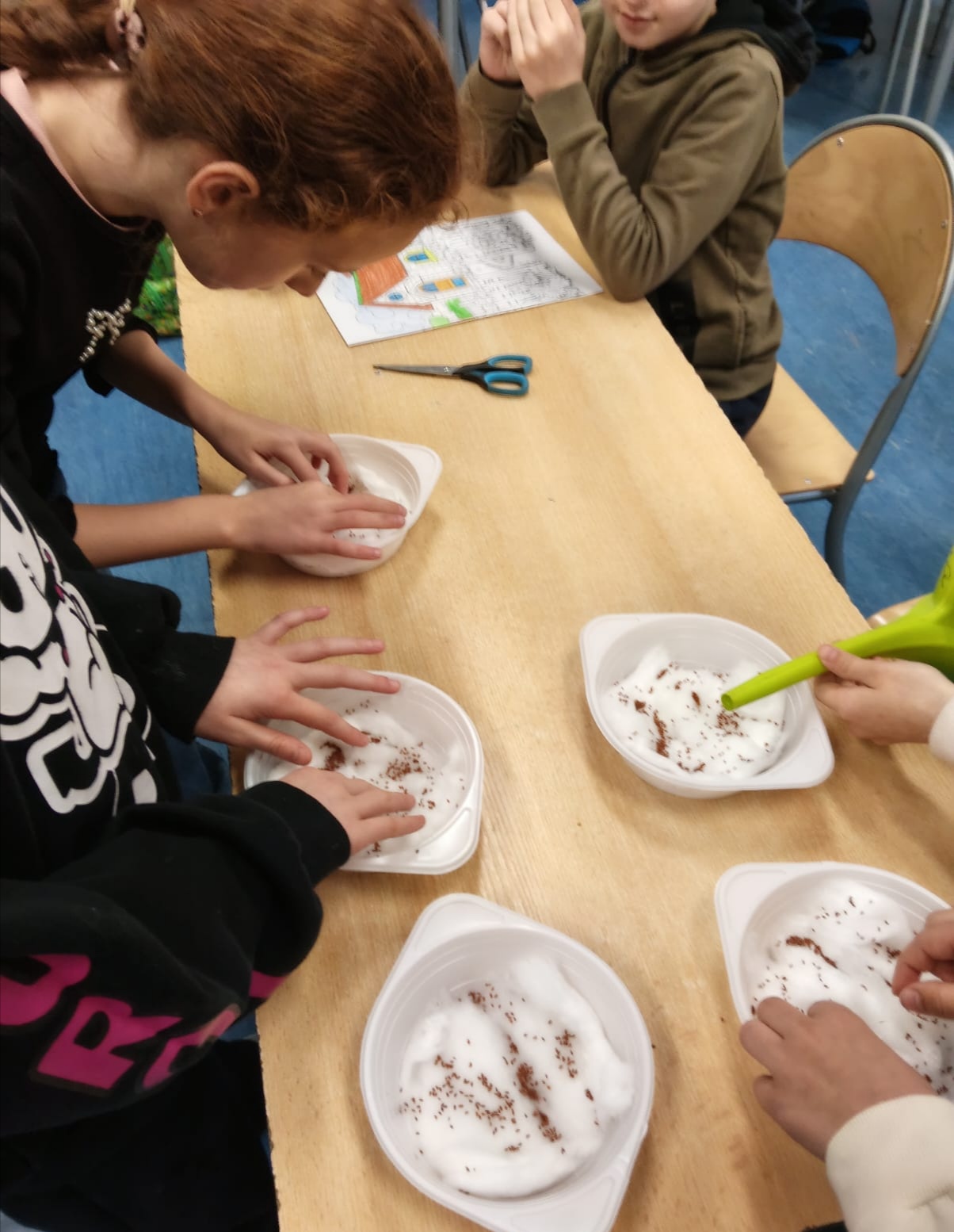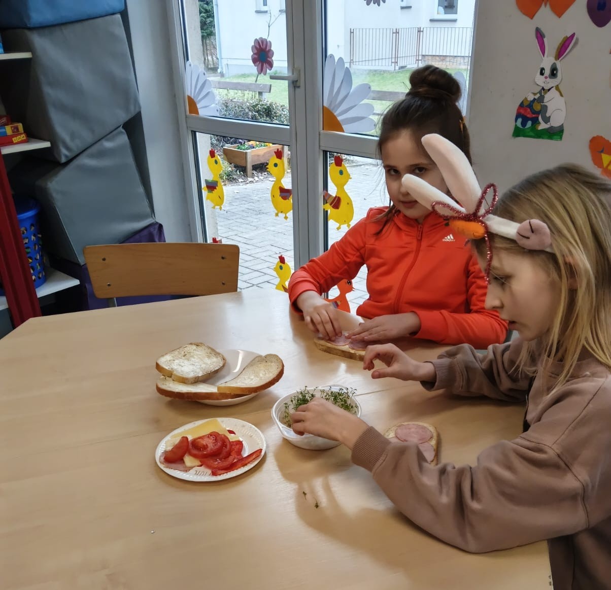 W trosce o kształtowanie właściwych nawyków żywieniowych i postaw prozdrowotnych - zorganizowano w ramach zajęć na świetlicy szkolnej miniwarsztaty kulinarne. Nadrzędnym celem tych zajęć była nauka prawidłowego komponowania posiłków, jak również dbałość o zróżnicowaną dietę, dzięki której dostarczamy organizmowi cennych składników. Wraz z wiosennymi przekąskami dostarczono organizmowi zarówno energii, jak i elementów budulcowych - białek, soli mineralnych oraz witamin - niezbędnych do wzrostu i rozwoju.