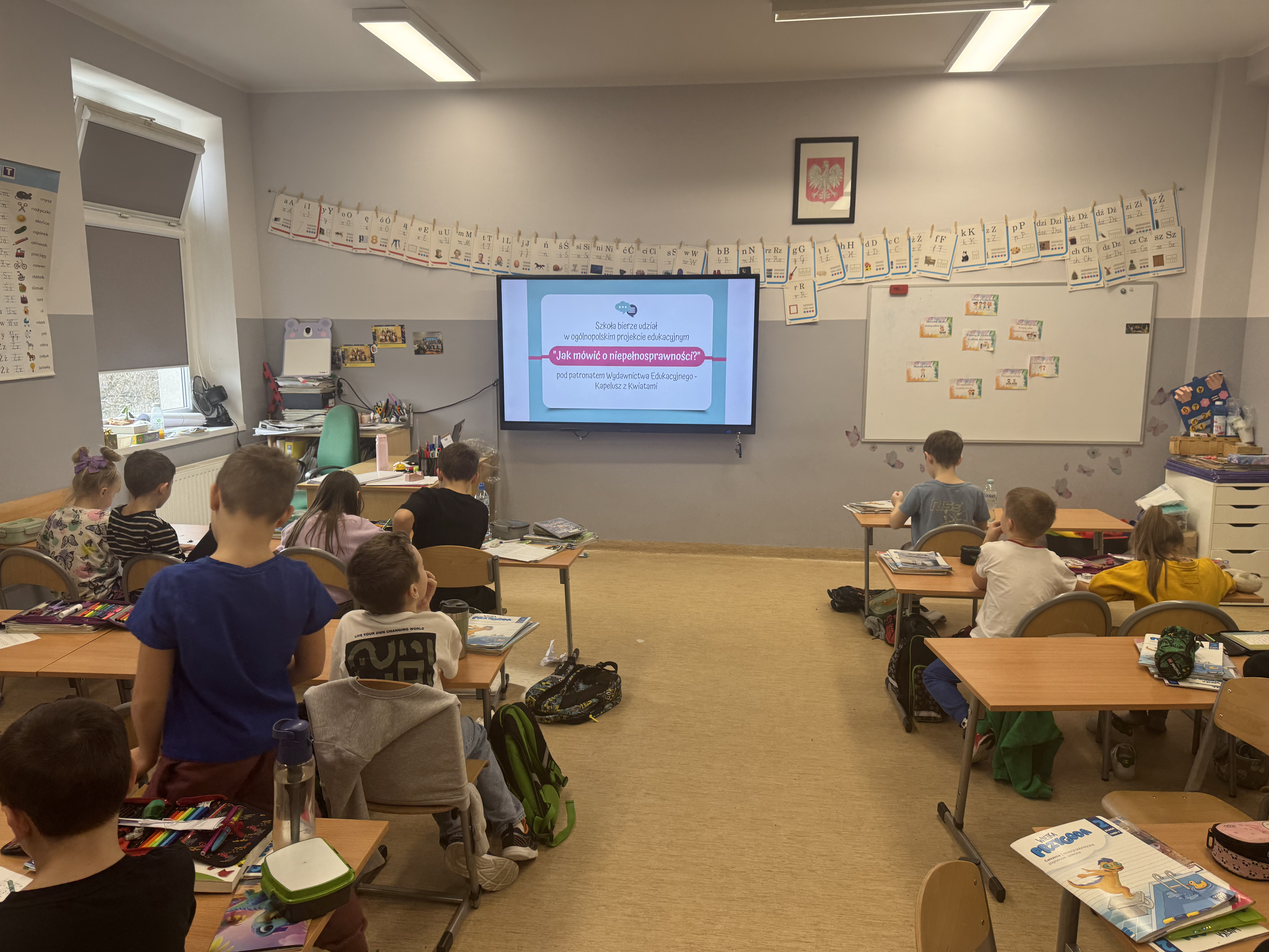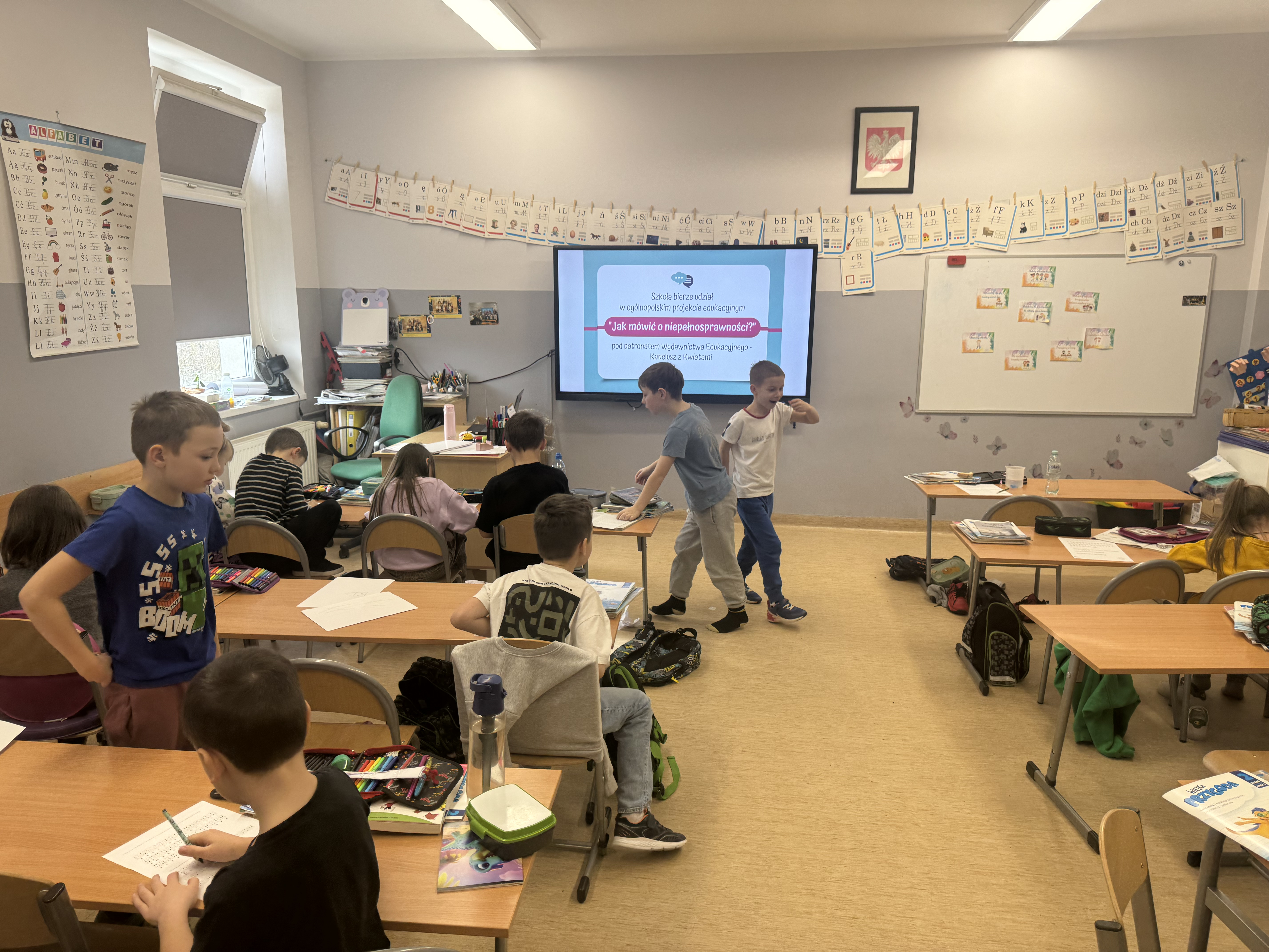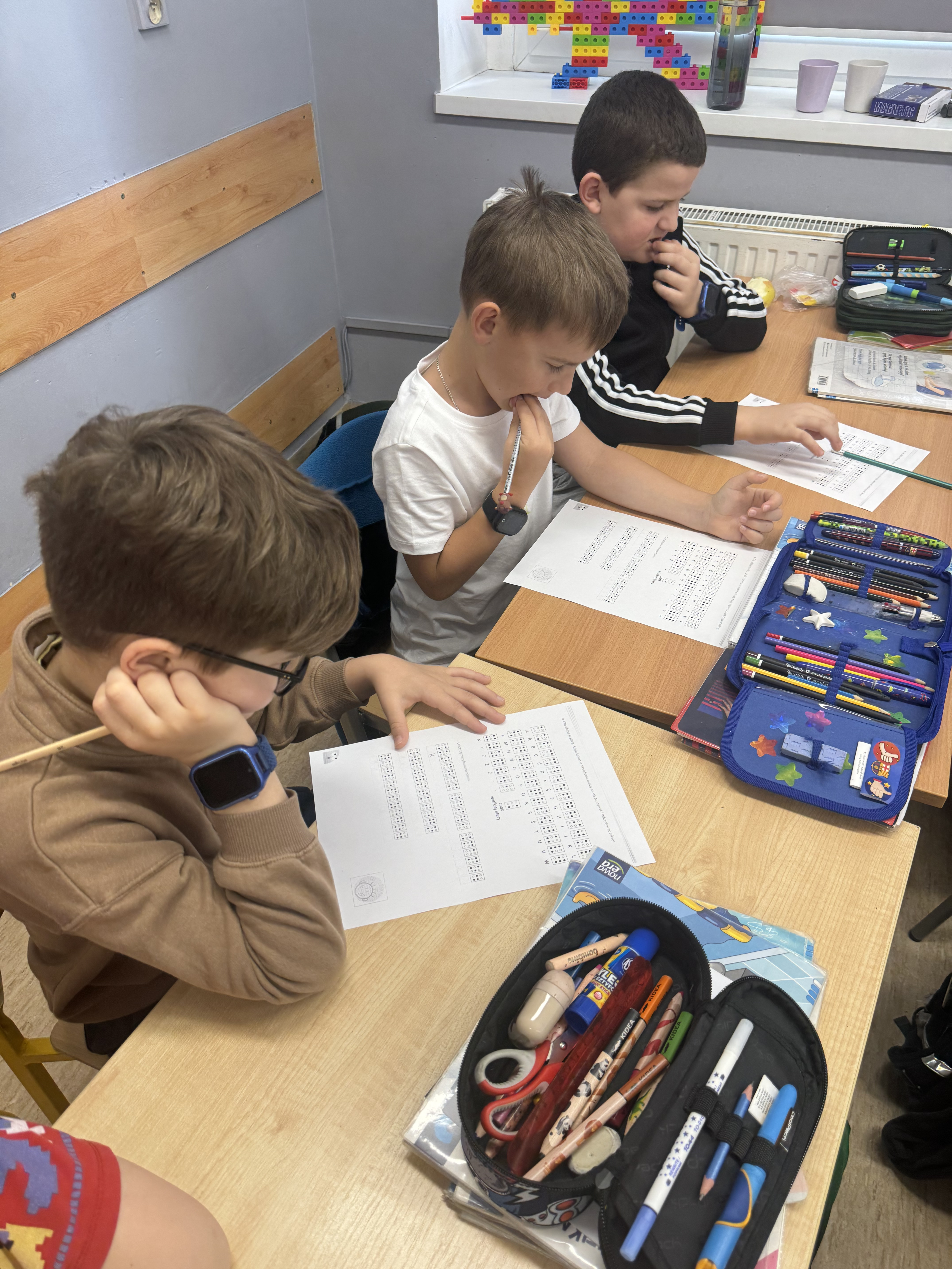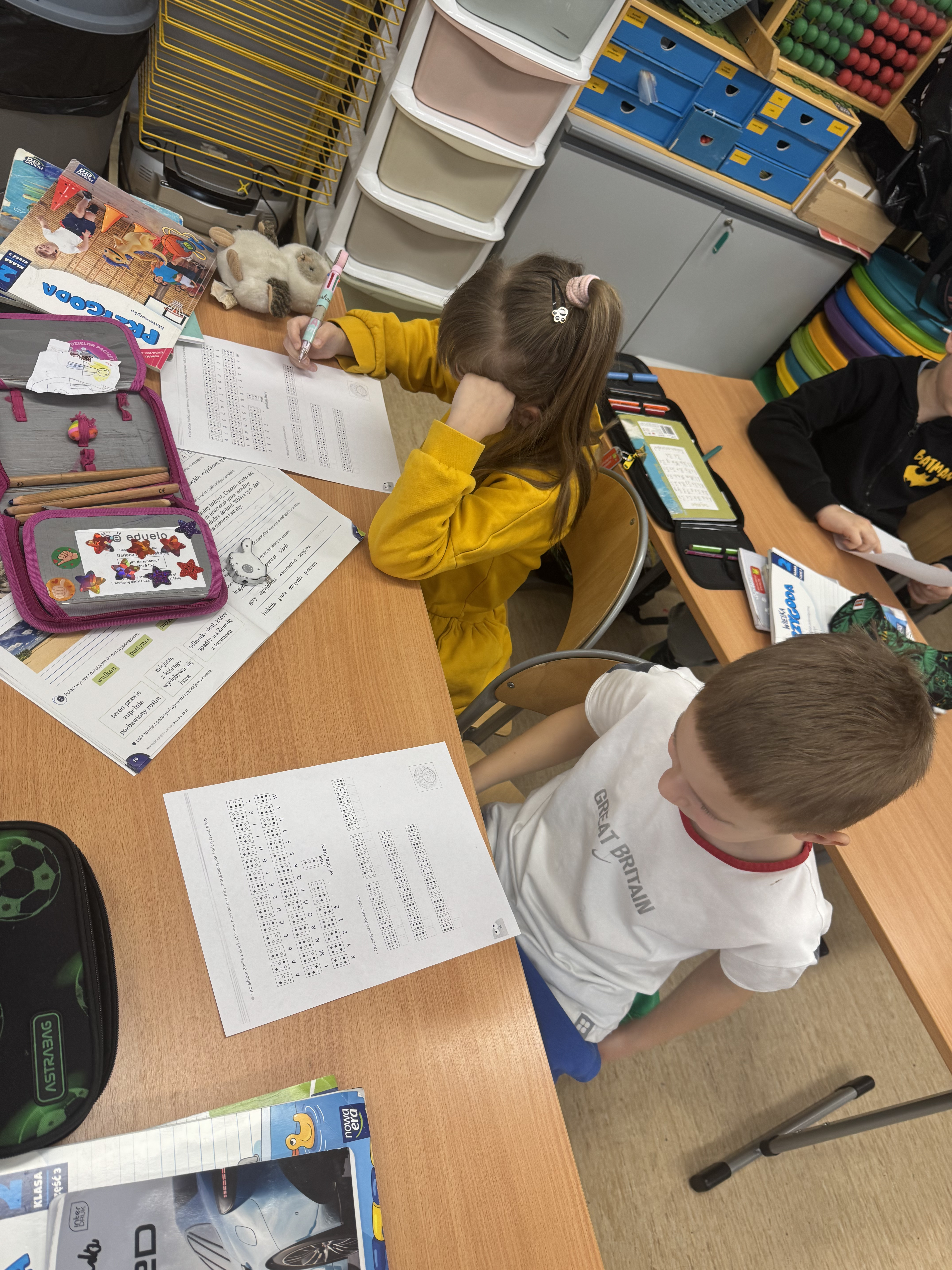 Na zakończenie zajęć każde dziecko podpisało się swoim imieniem zapisanym w alfabecie Braille’a, co było ciekawym i angażującym doświadczeniem. Dzięki tym działaniom uczniowie rozwijali empatię, wrażliwość społeczną oraz poszerzali swoją wiedzę o sposobach komunikacji osób niewidomych.