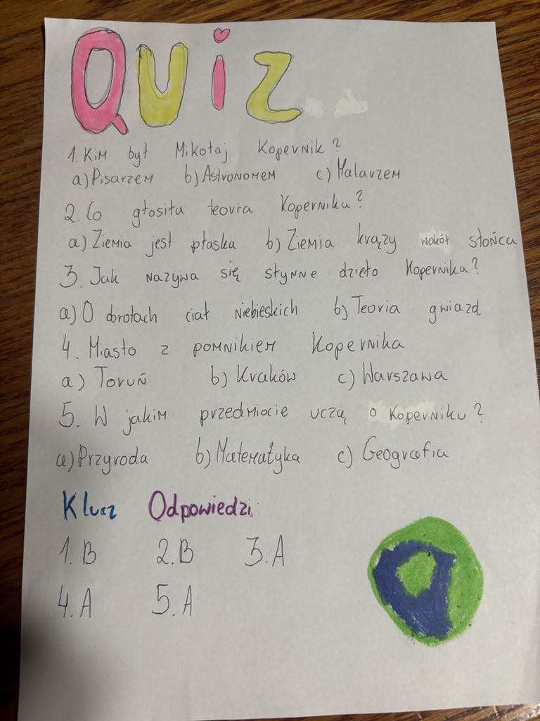 Efektem naszej wspólnej pracy są opracowane naukowe quizy wiedzy - poniżej linki: