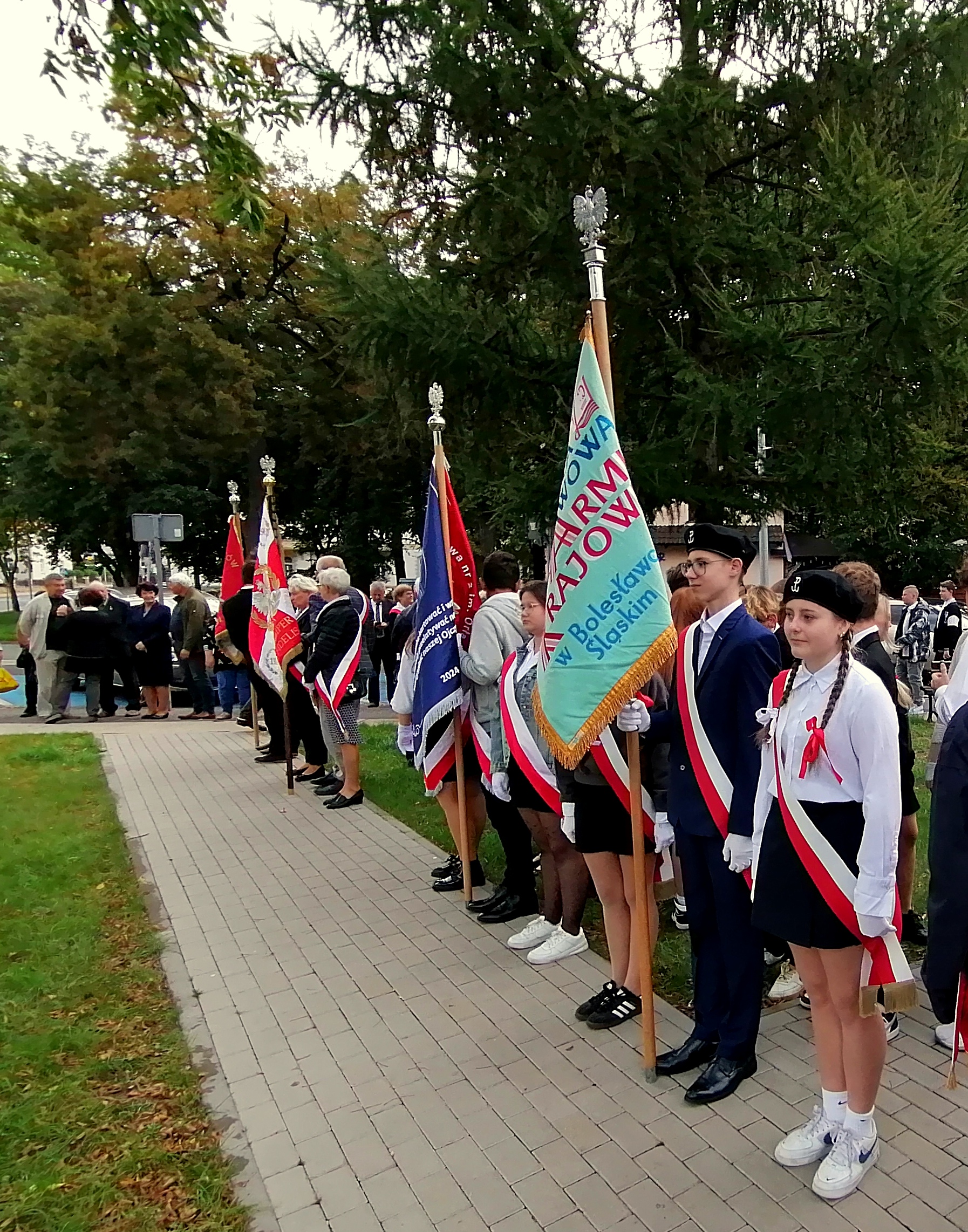 Udział w czasie trwania uroczystych obchodów wzięła także delegacja Pocztu Sztandarowego Szkoły Podstawowej nr 3 im. Armii Krajowej w Bolesławcu w składzie: Amelia Fila, Paweł Kot, Carmen Żekieć. W uroczystości wzięli również udział uczniowie klas ósmych naszej szkoły: Milena Biała, Karol Dziedzic, Maciej Faltyn, Maja Greszczuk, Alicja Jaśko, Piotr Polak, Amelia Utracik oraz dyrektor szkoły - pani Anna Goździk i opiekun pocztu - pan Adrian Banyś.