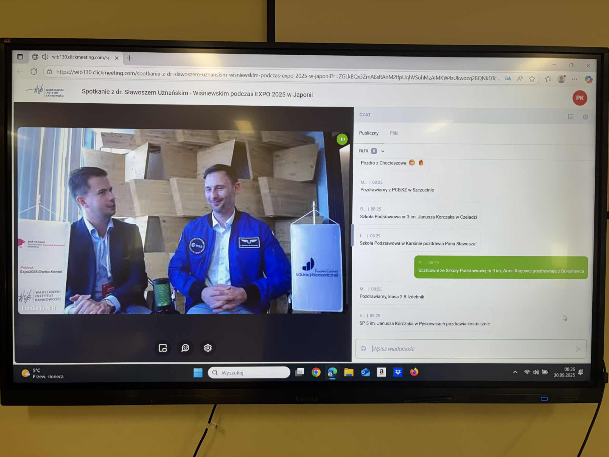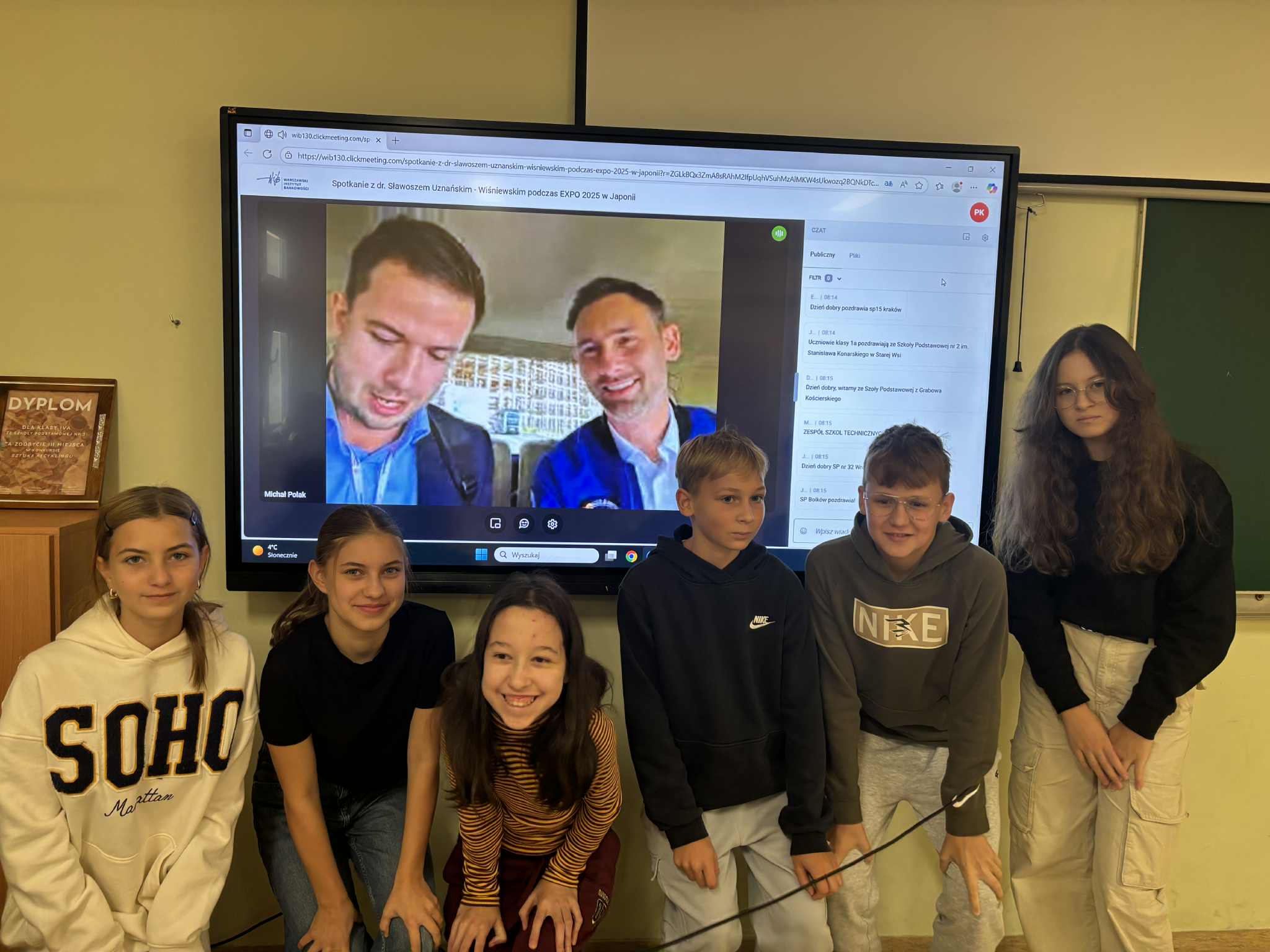 Ponad 43 tysiące uczniów i nauczycieli ze szkół z Polski i polonijnych szkół z całego świata wzięło udział w wyjątkowej, międzynarodowej lekcji online z Polskiego Pawilonu na EXPO 2025 w Osace. My także - uczniowie klasy 6b oraz 8b ze Szkoły Podstawowej nr 3 im. Armii Krajowej braliśmy udział w tym wyjątkowym wydarzeniu. Gościem specjalnym był dr Sławosz Uznański-Wiśniewski - astronauta Europejskiej Agencji Kosmicznej, pierwszy Polak na Międzynarodowej Stacji Kosmicznej (ISS), uczestnik pierwszej polskiej misji naukowo-technologicznej IGNIS. Lekcję zorganizowaliśmy wspólnie z Polską Agencją Inwestycji i Handlu.