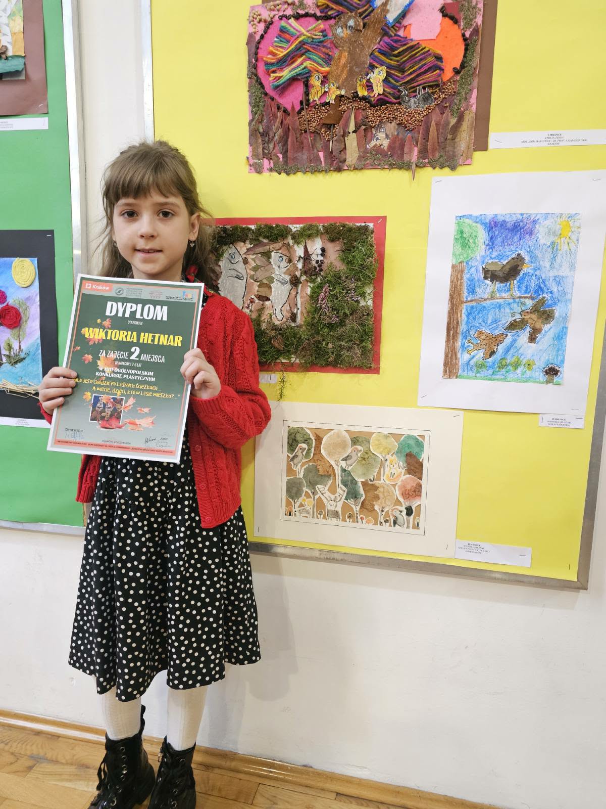 Dnia 30 stycznia 2026 r. w Młodzieżowym Domu Kultury „Dom Harcerza” im. prof. A. Kamińskiego w Krakowie odbyło się uroczyste podsumowanie XVII Ogólnopolskiego Konkursu Plastycznego „Miło jest chodzić po leśnych ścieżkach… A wiecie, dzieci, kto w lesie mieszka?...”, w którym doceniono 35 prac uczniów spośród 500 nadesłanych. Nagrodę w tym konkursie otrzymała uczennica naszej szkoły - Wiktoria Hetnar z kl. 1a, zajmując II miejsce w kategorii: 7-8 lat. Uczennica wykonała piękną pracę, która została doceniona przez jury.