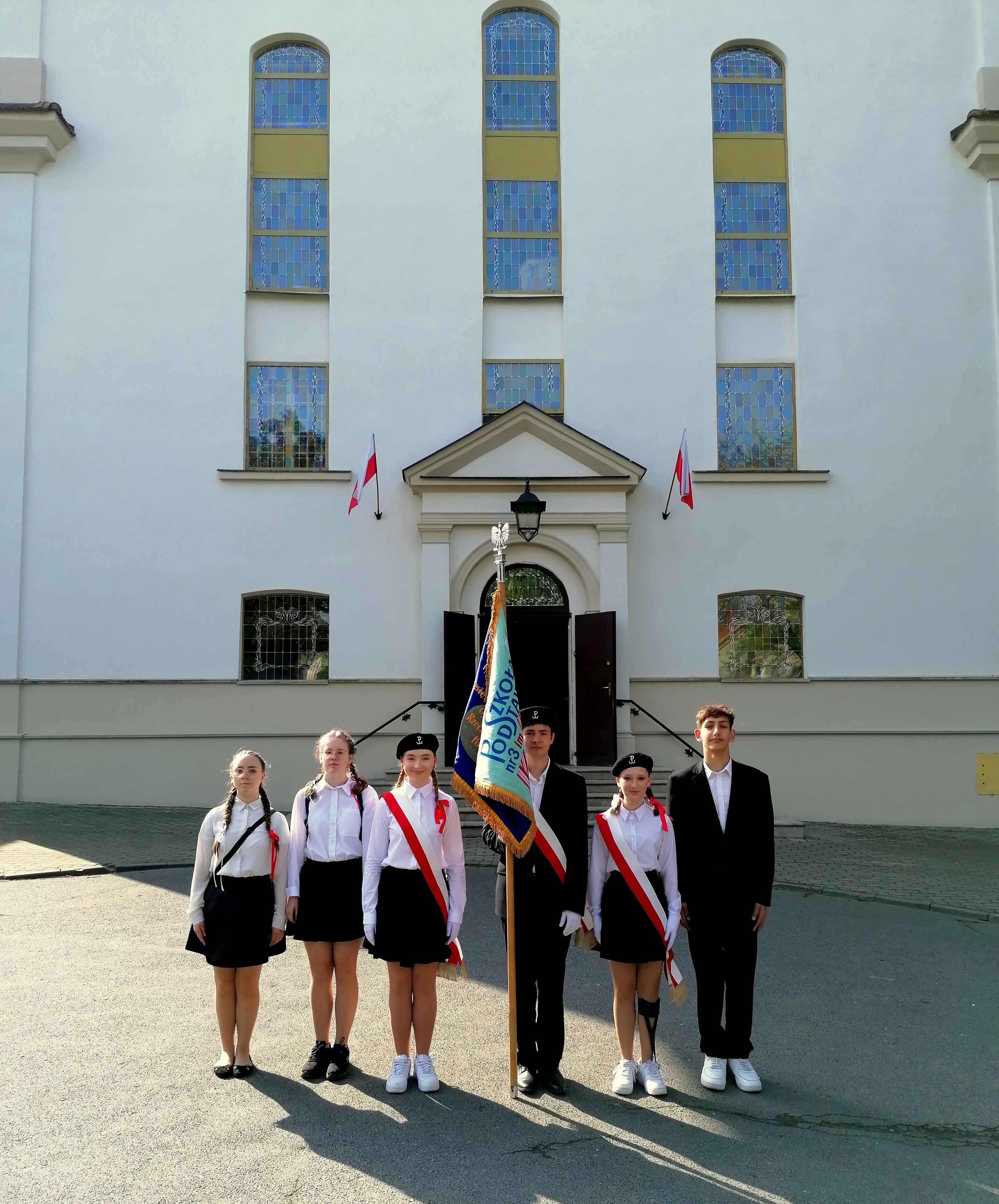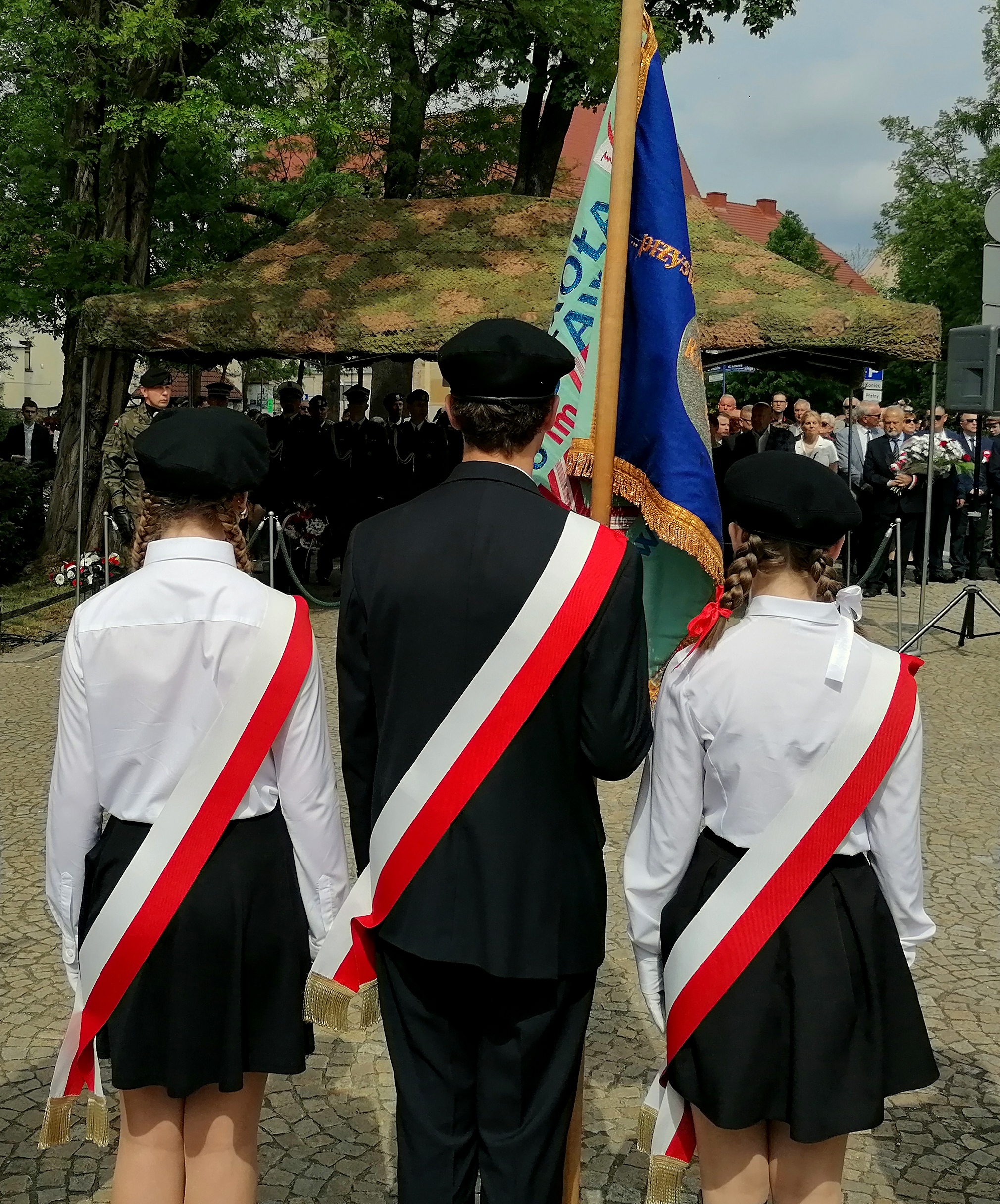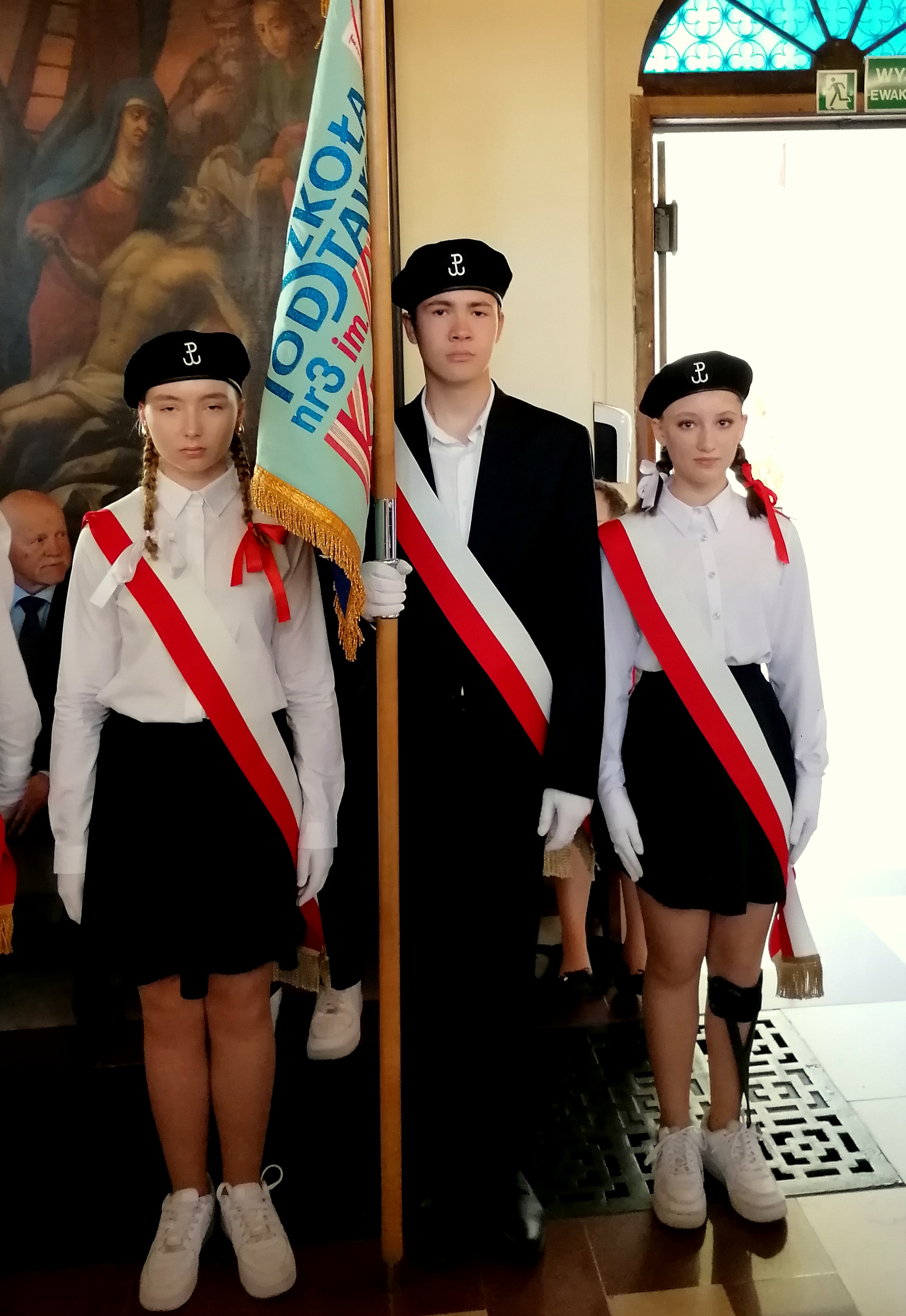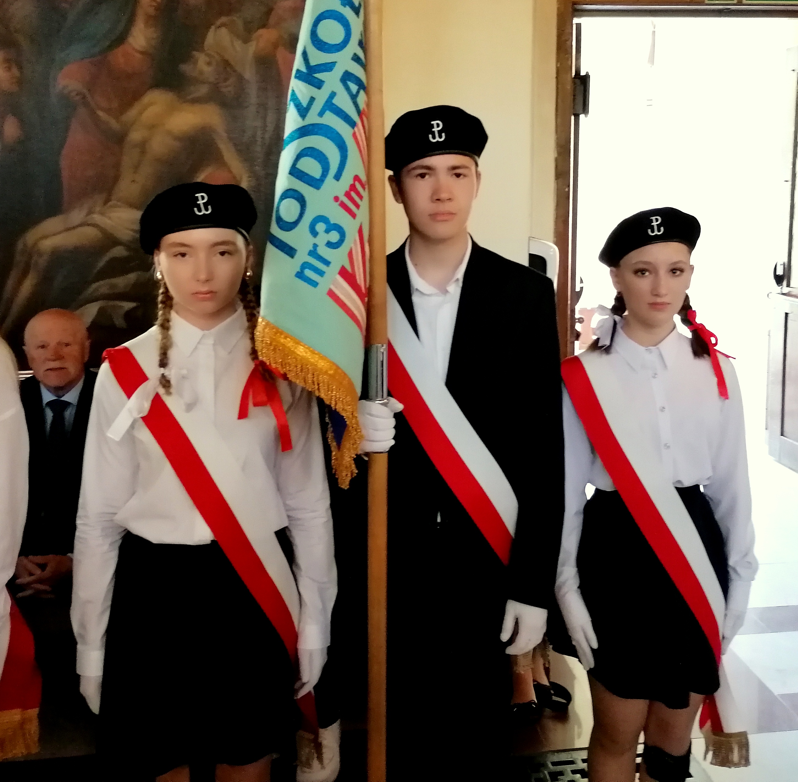 Udział w uroczystości wzięła także delegacja Pocztu Sztandarowego Szkoły Podstawowej nr 3 im. Armii Krajowej w składzie: Oliwia Irska, Zofia Gawlik, Dominik Majewski oraz Sara Jaskot, Oliwia Miękina i Marcin Czubak. Opiekunem pocztu był pan Adrian Banyś.