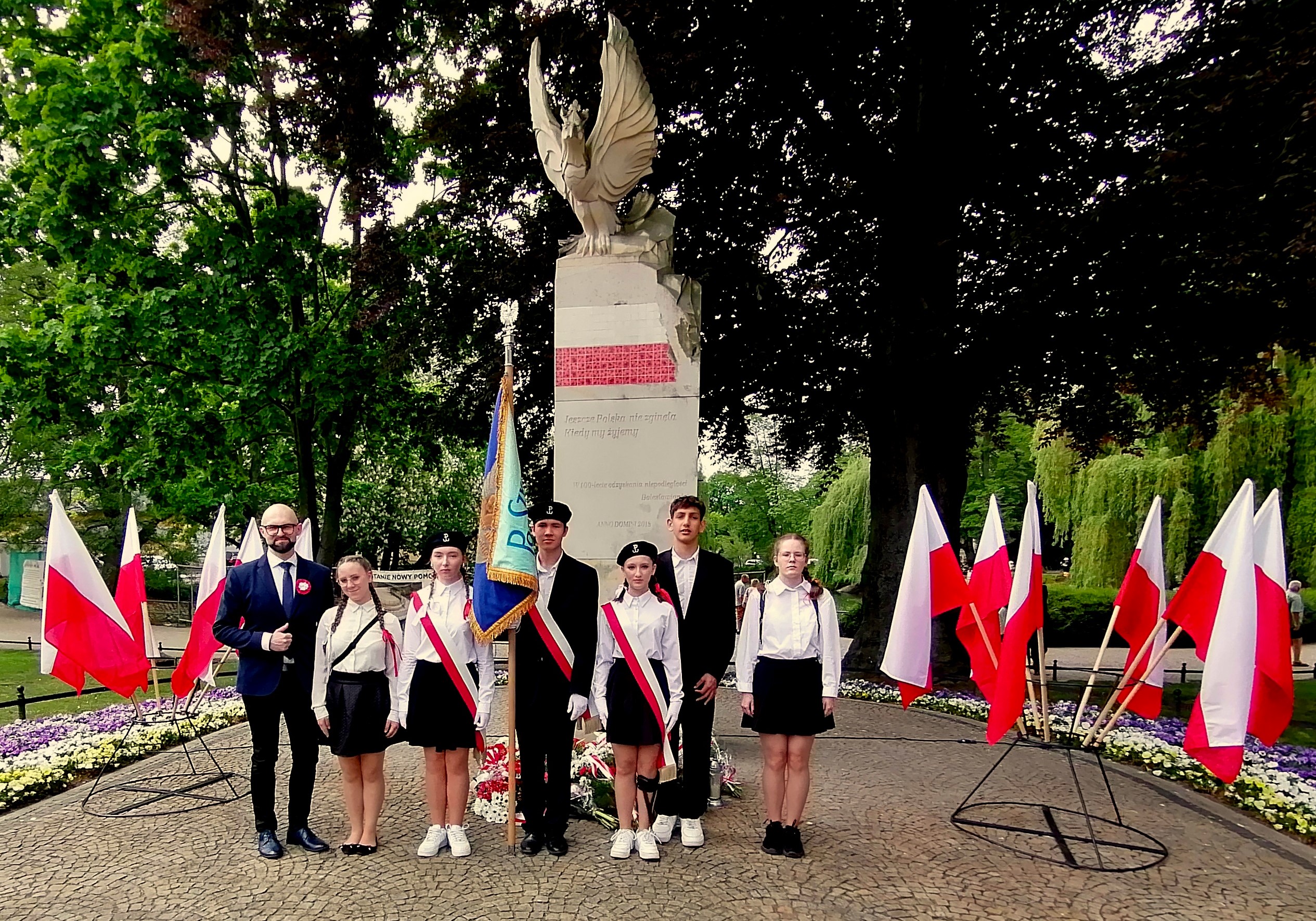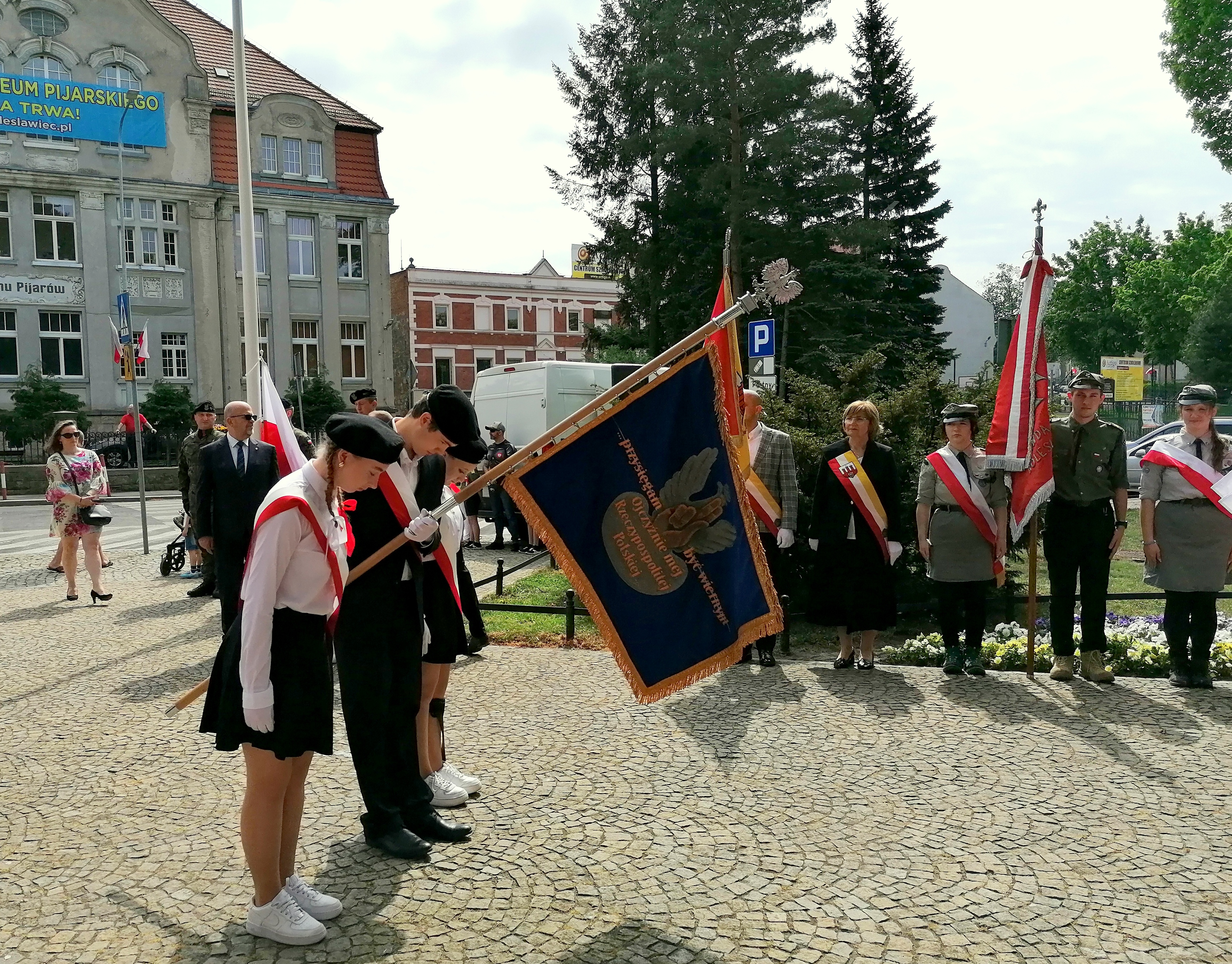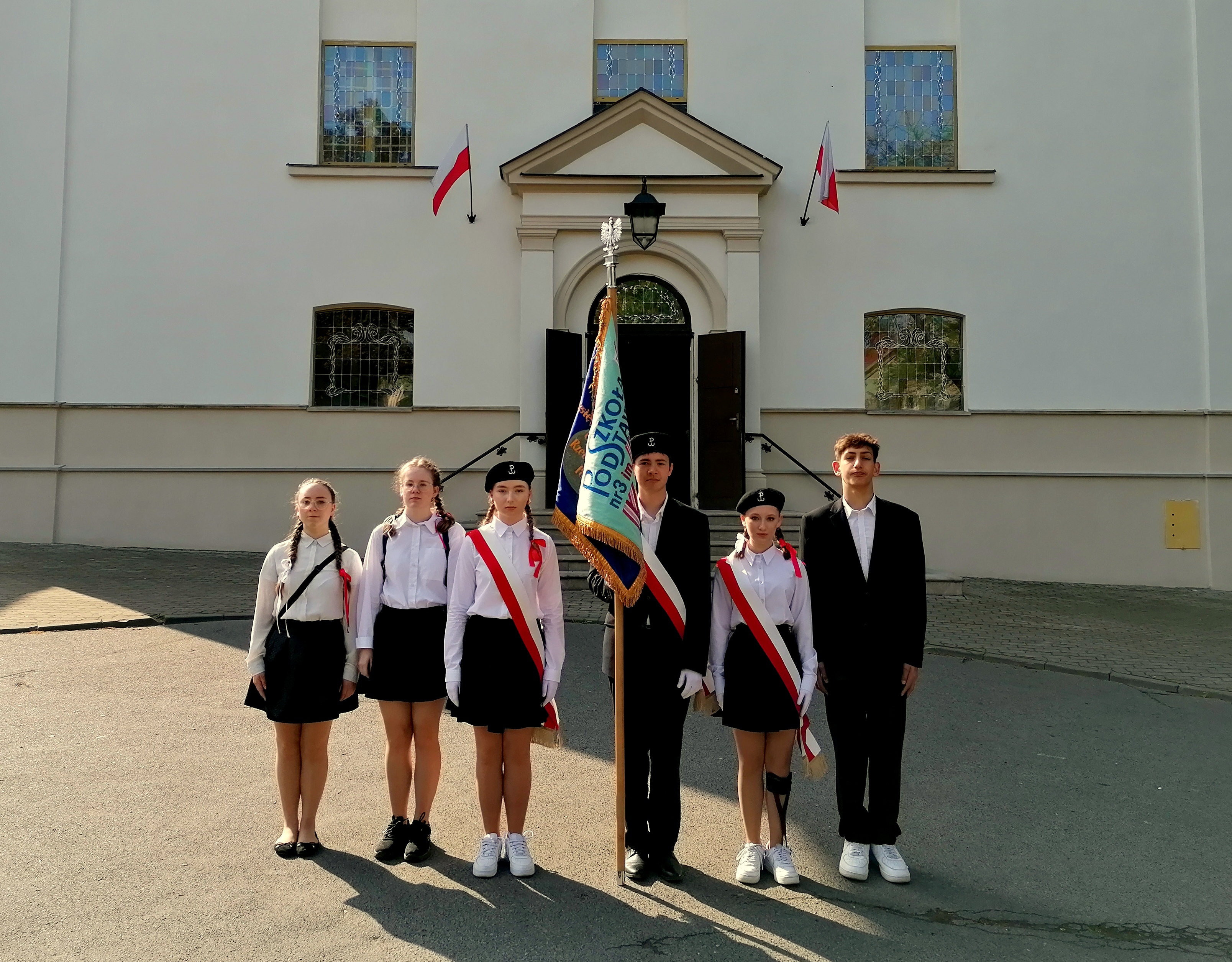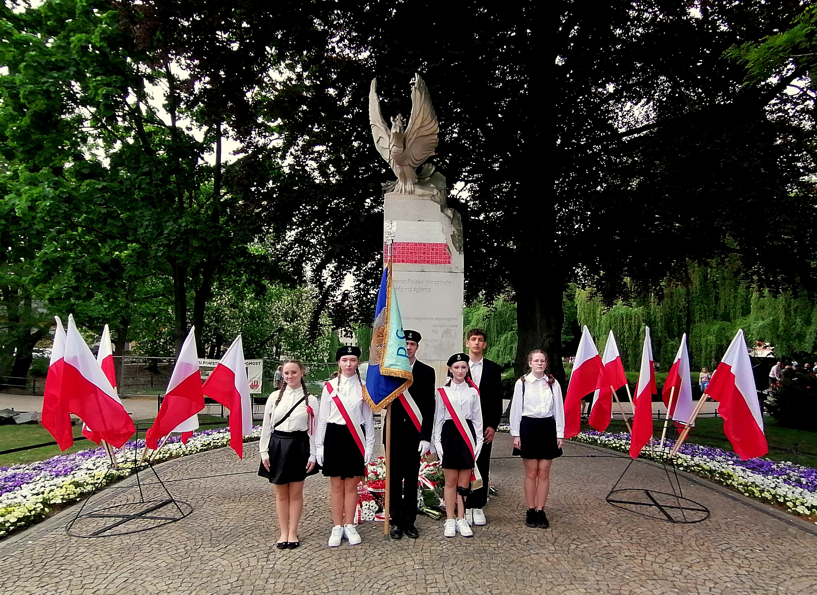 Udział w uroczystości wzięła także delegacja Pocztu Sztandarowego Szkoły Podstawowej nr 3 im. Armii Krajowej w składzie: Oliwia Irska, Zofia Gawlik, Dominik Majewski oraz Sara Jaskot, Oliwia Miękina i Marcin Czubak. Opiekunem pocztu był pan Adrian Banyś.