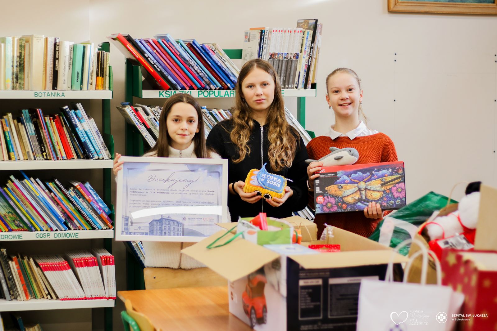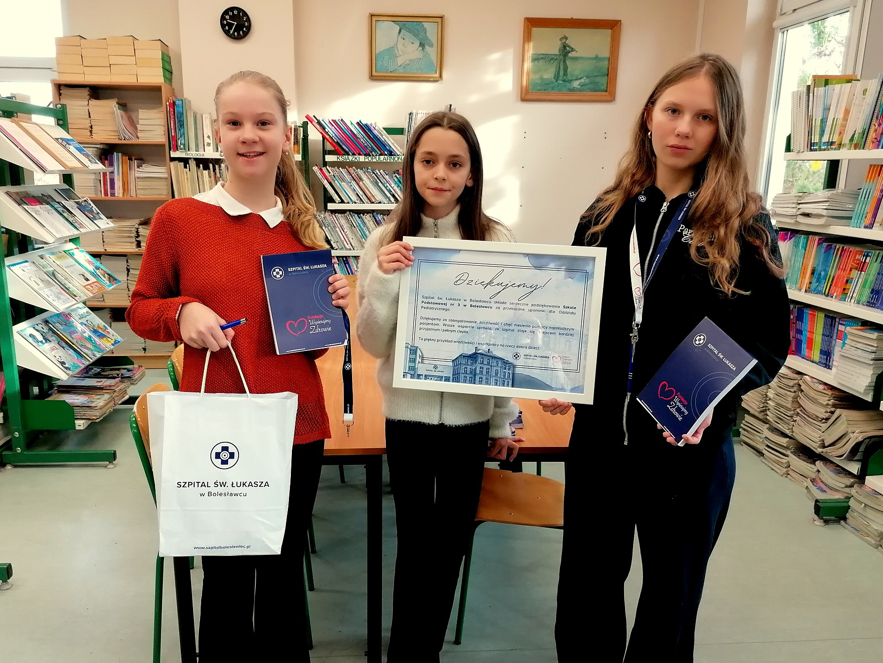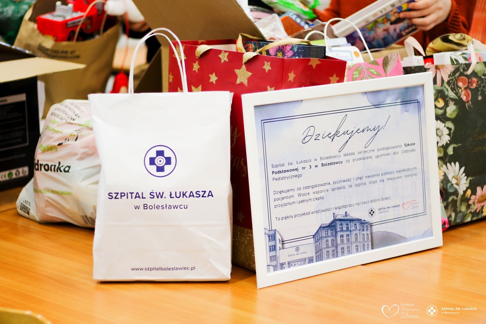Dzięki akcji mali pacjenci przebywający na oddziale dziecięcym w Szpitalu św. Łukasza w Bolesławcu spoglądają z uśmiechem na nadchodzące dni. Akcja organizowana była przy współpracy Samorządu Uczniowskiego Szkoły Podstawowej nr 3 im. Armii Krajowej ze Szpitalem św. Łukasza i Fundacją „Wspierajmy Zdrowie” w Bolesławcu.