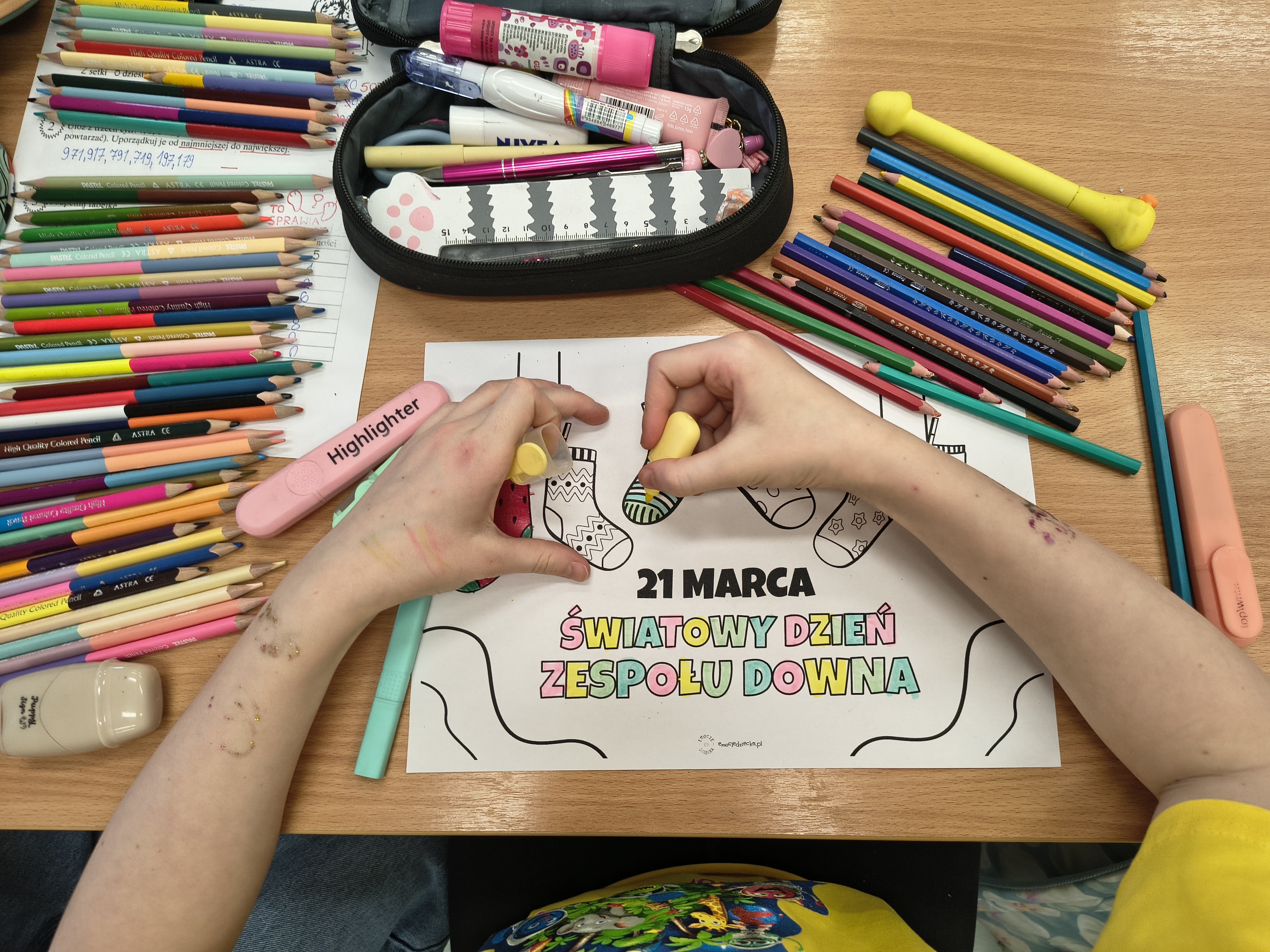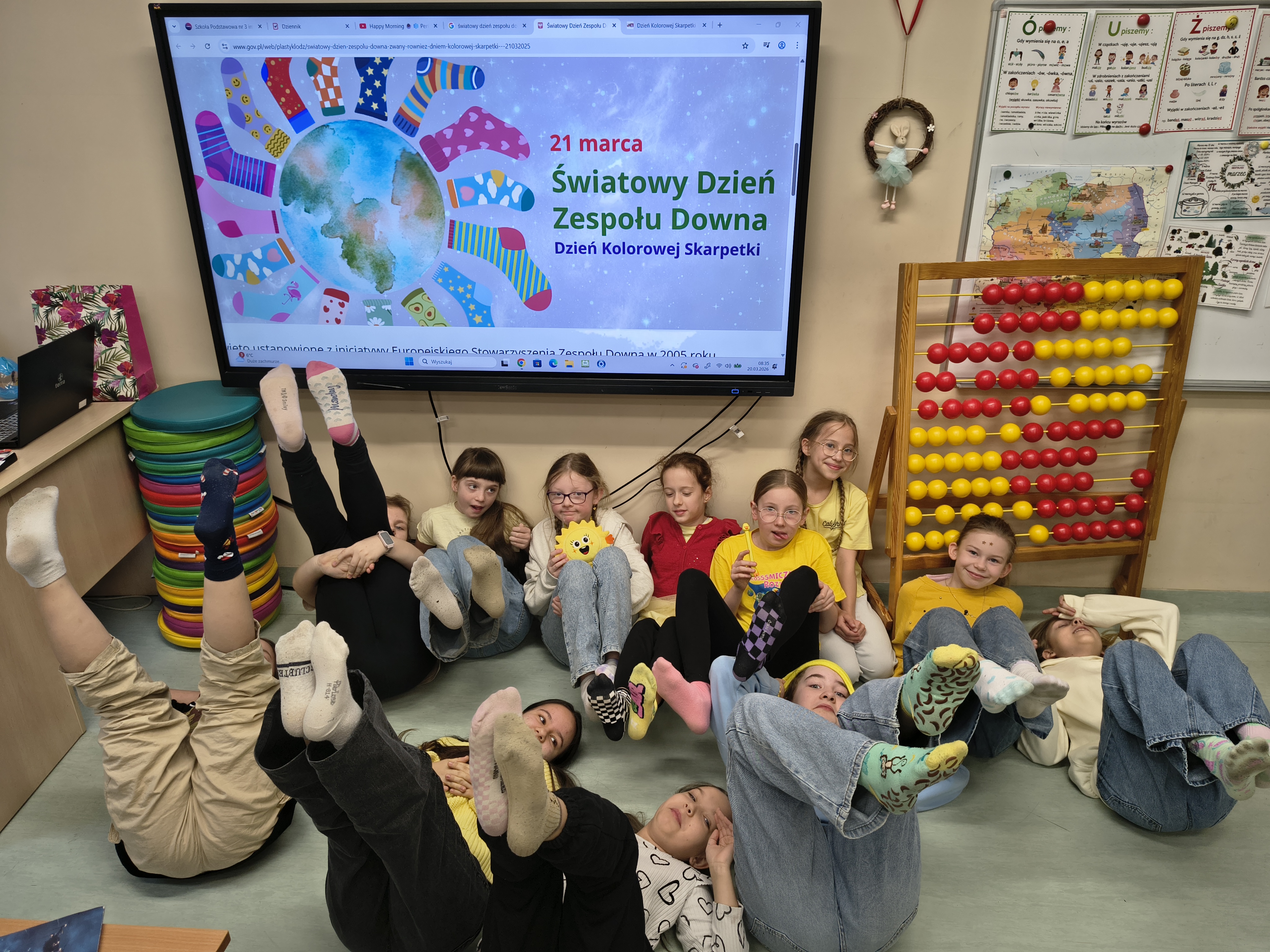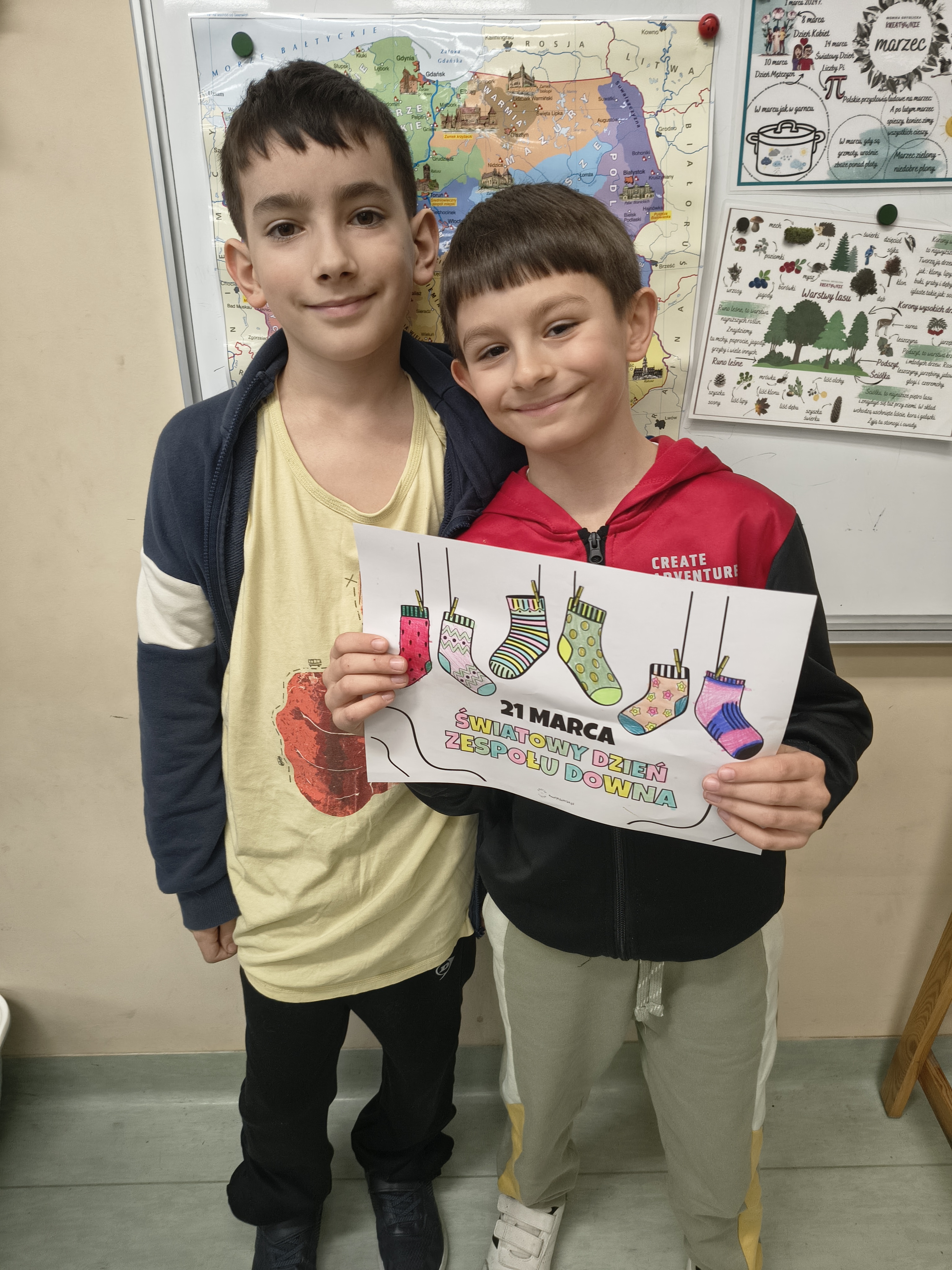 Dnia 20 marca 2026 r. uczniowie kl. 3a ukryli na całym terenie szkoły pomalowane przez siebie kamyczki wiosenno-wielkanocne. Zachęcamy wszystkich do odszukania ich na terenie naszej placówki. Ponadto z okazji zbliżającego się Światowego Dnia Zespołu Downa wszyscy uczniowie, solidaryzując się z osobami z trisomią założyli dwie różne, kolorowe skarpetki. Zakończyliśmy dzień grami planszowymi i zabawami ruchowymi, aby jak najlepiej zintegrować całą grupę. Wszystkim towarzyszył doskonały i wiosenny humor!
