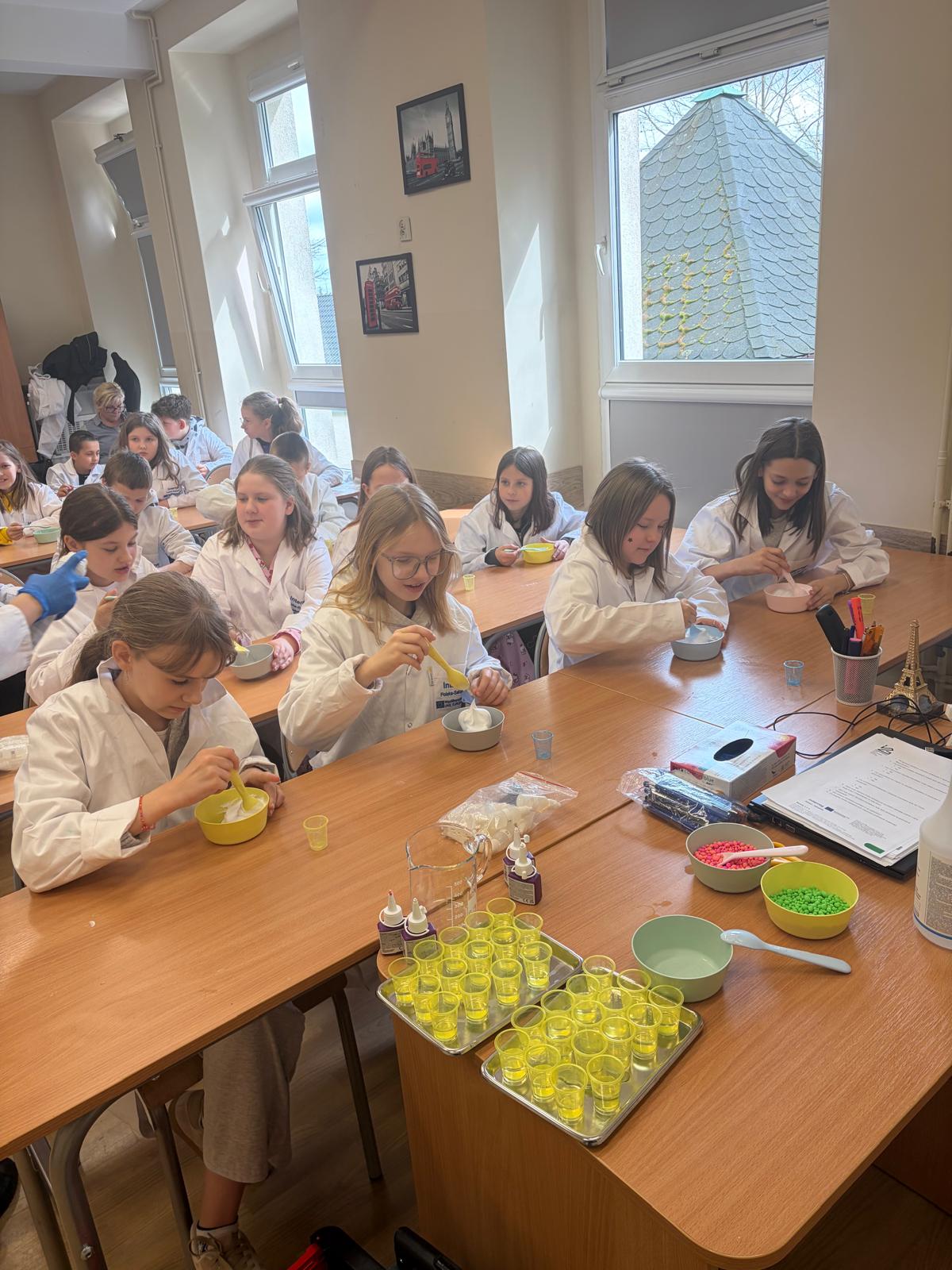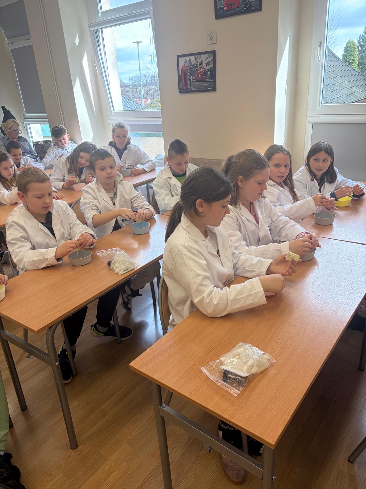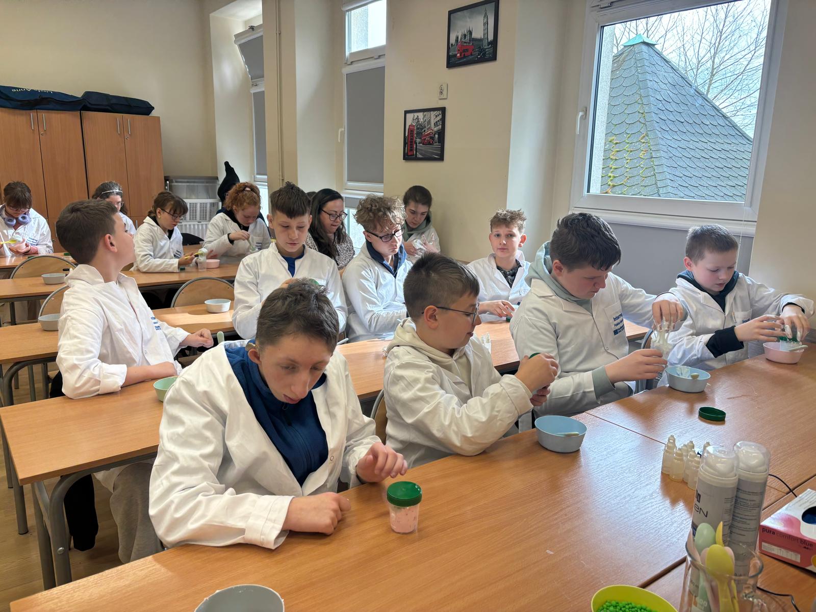 W dniach 25-26 marca 2026 r. w naszej szkole odbyły się warsztaty o nazwie „Slimowisko”, które zostały zorganizowane dzięki Polskiemu Ośrodkowi Rozwoju Technologii Łukasiewicz PORT z Wrocławia - Ogrody Doświadczeń. Zajęcia te były poświęcone tworzeniu slime’ów oraz poznaniu ich właściwości. Po krótkiej lekcji fizyki i zabaw sensorycznych uczniowie samodzielnie robili swoje slime’y, eksperymentując z proporcjami składników.