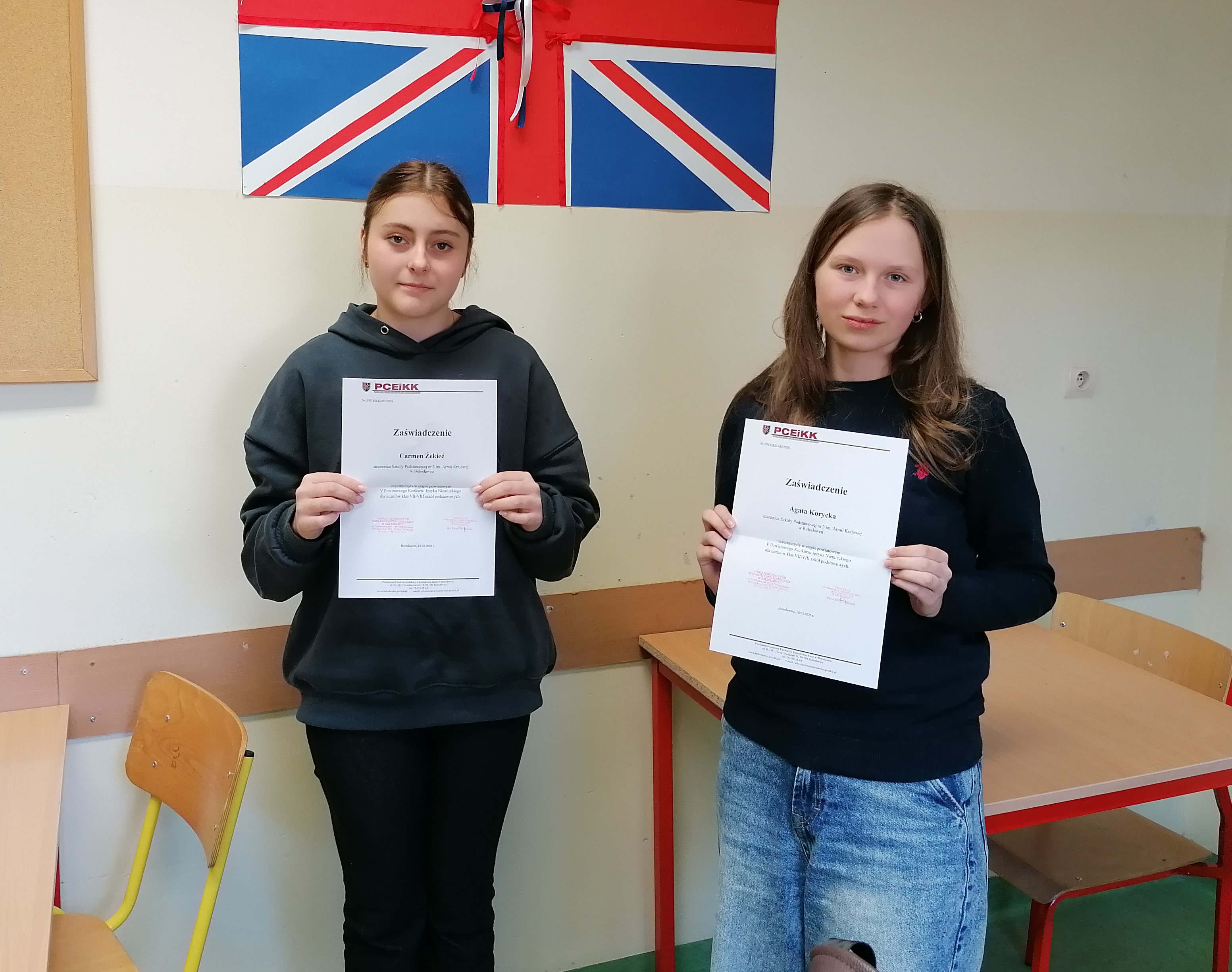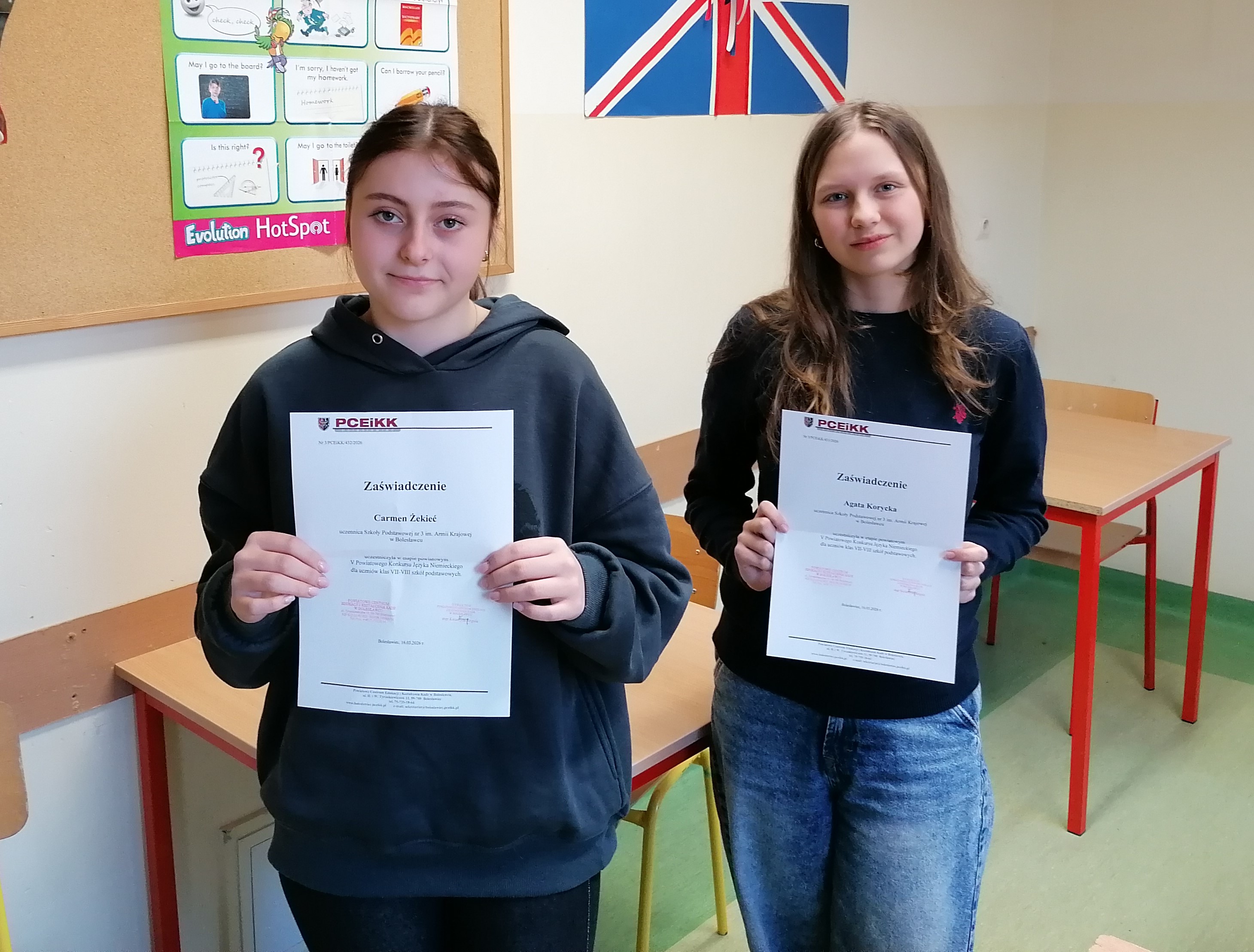 PCEiKK w Bolesławcu zorganizowało kolejną edycję Powiatowego Konkursu Języka Niemieckiego dla uczniów klas VII-VIII szkół podstawowych. Tegoroczny konkurs odbył się 16 marca 2026 r. w Szkole Podstawowej nr 5 w Bolesławcu. W etapie szkolnym wzięło udział 163 uczniów z 20 szkół podstawowych. W finale konkursu wzięło udział 22 uczniów. Naszą szkołę reprezentowały uczennice: Carmen Żekieć z kl. 8a i Agata Korycka z kl. 8b. Powiatowa Komisja Konkursowa wyłoniła 6 laureatów.