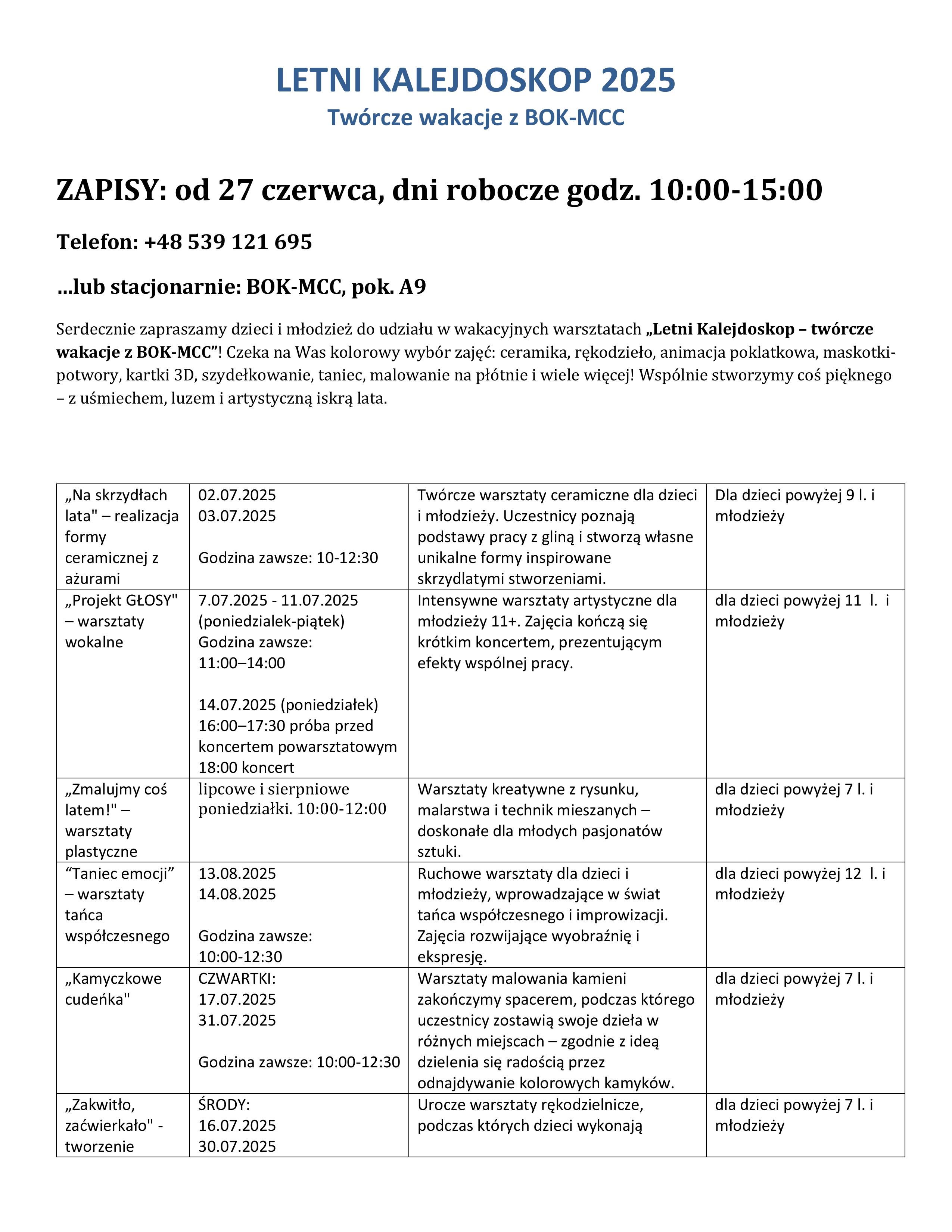 MOPS w Bolesławcu - harmonogram pracy specjalistów na 2025 r.