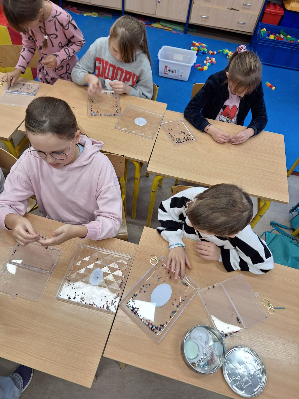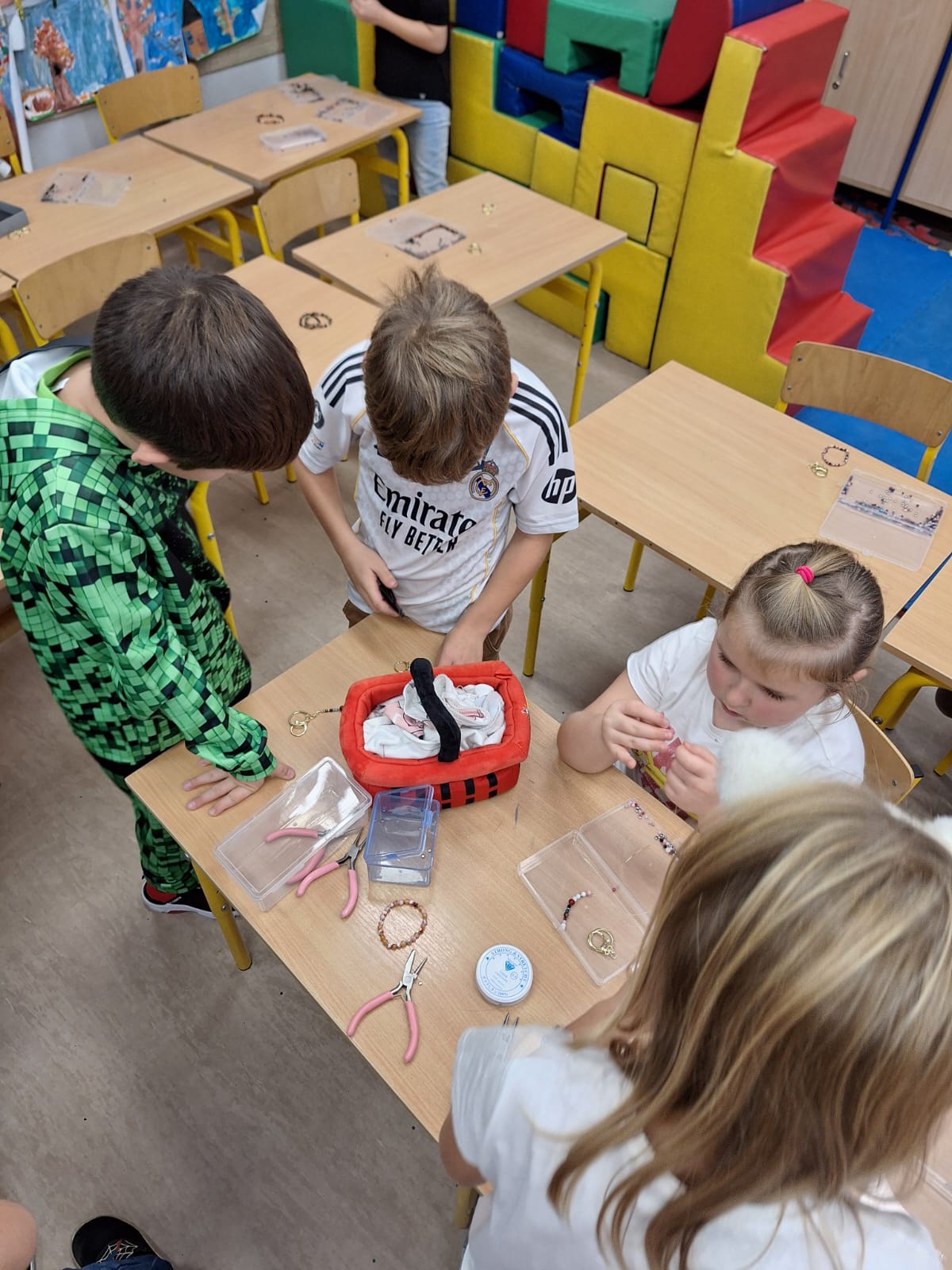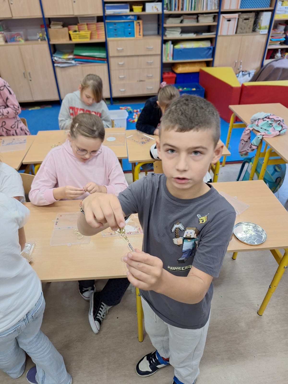 Co się kryje w Ziemi??? Bogactwa, z których uczniowie kl. 2b samodzielnie wykonali biżuterię. O kamieniach szlachetnych ciekawie opowiedziała mama jednego z uczniów i poprowadzila warsztaty jubilerskie w klasie.
