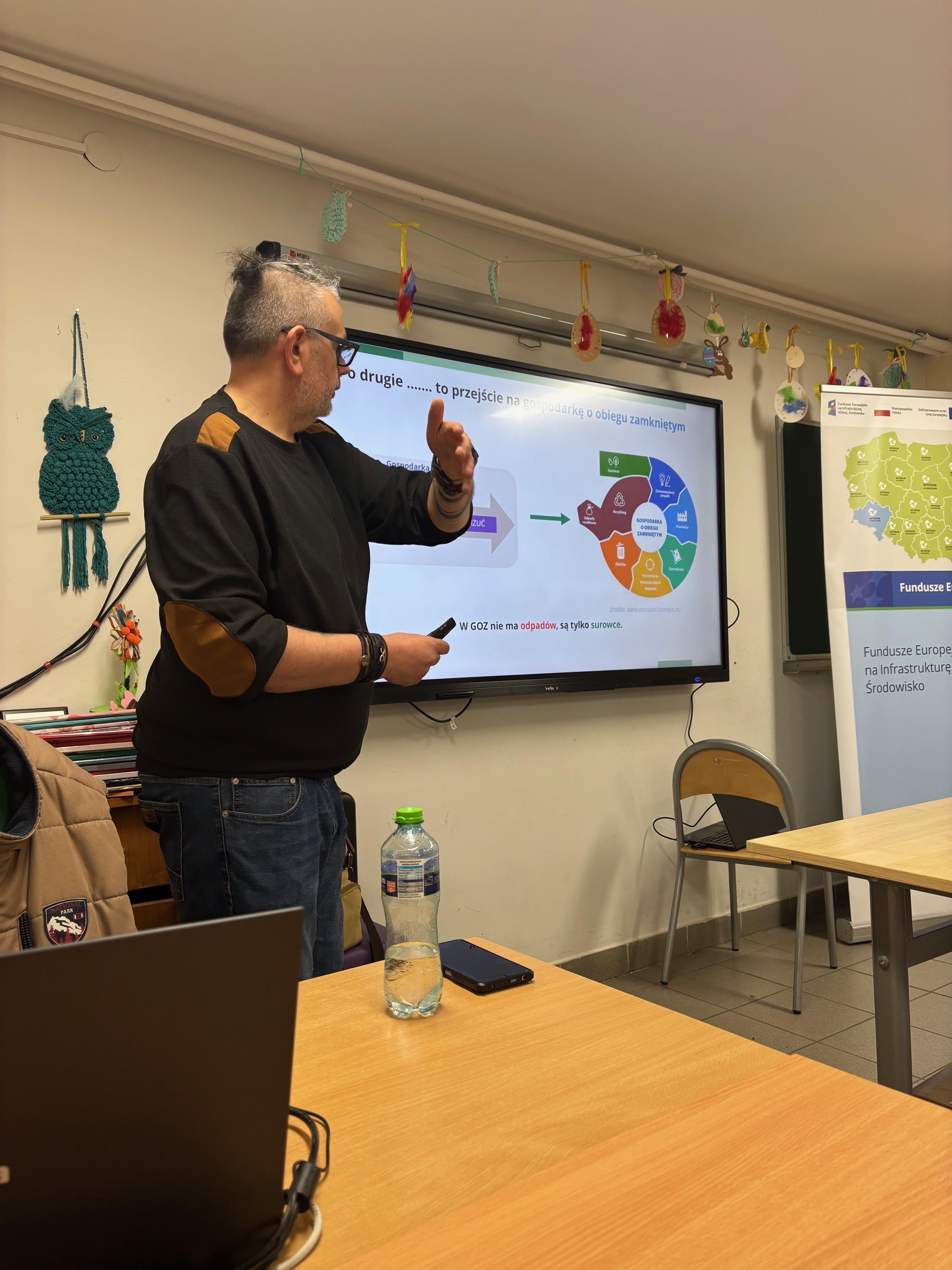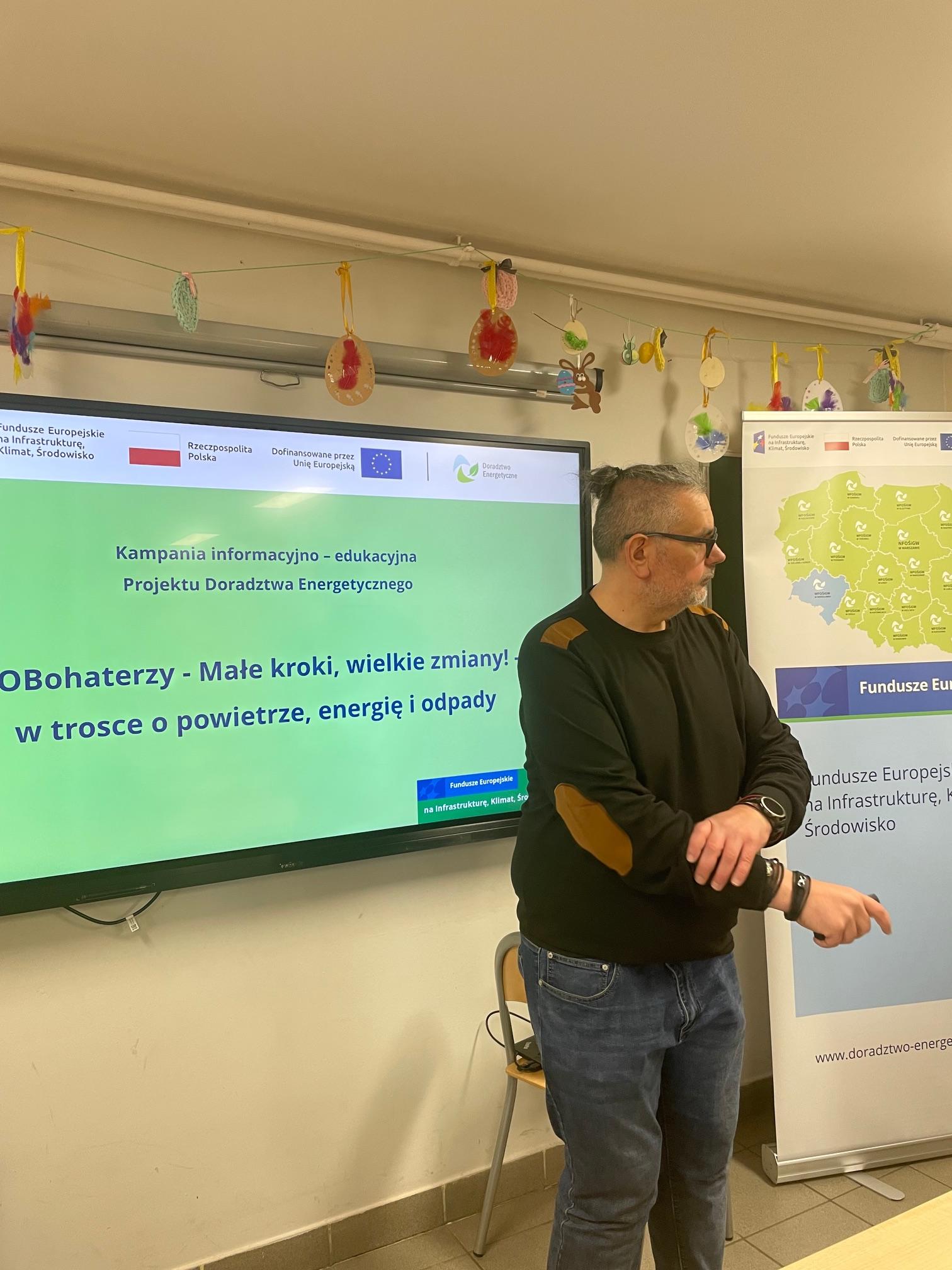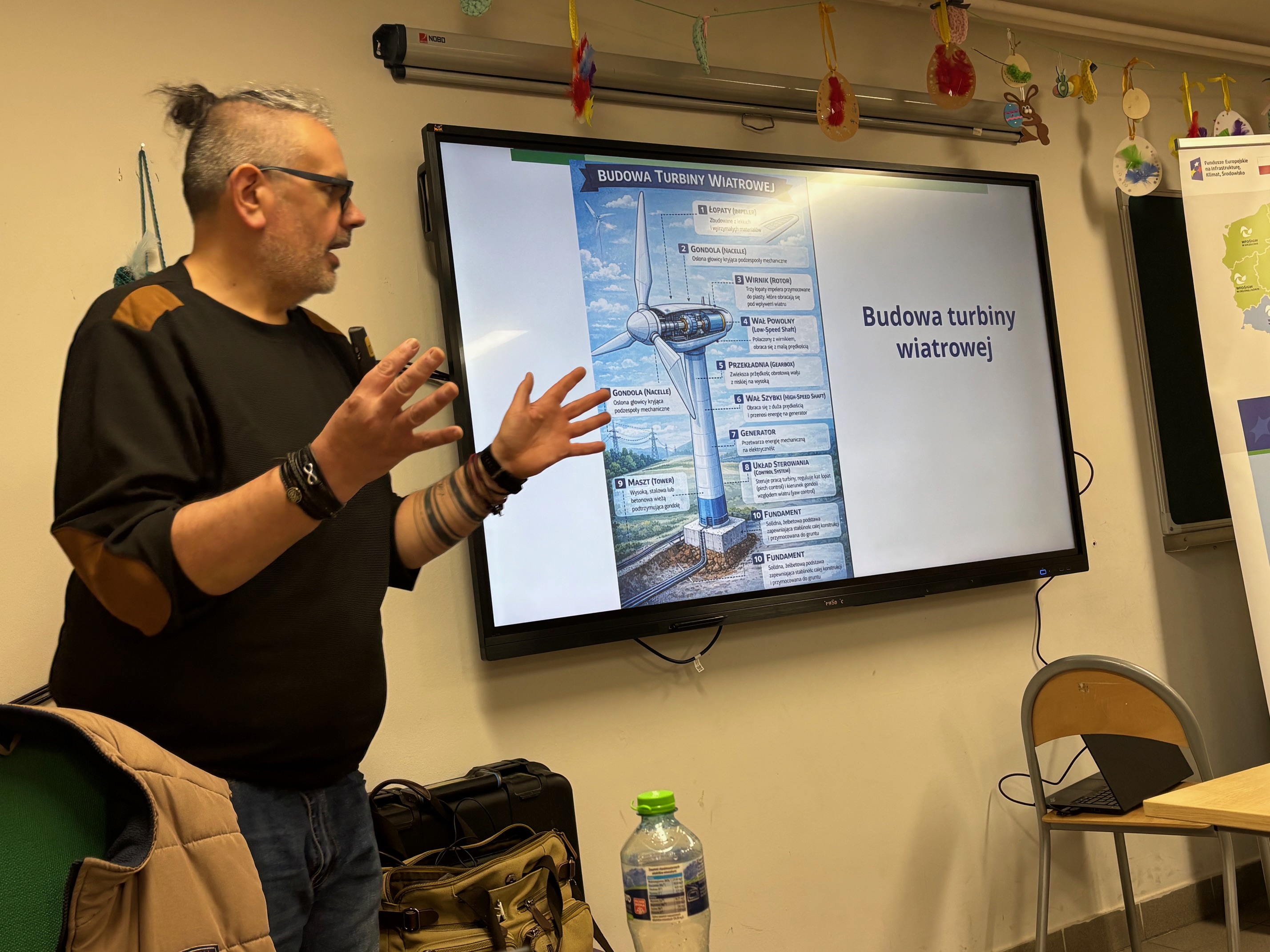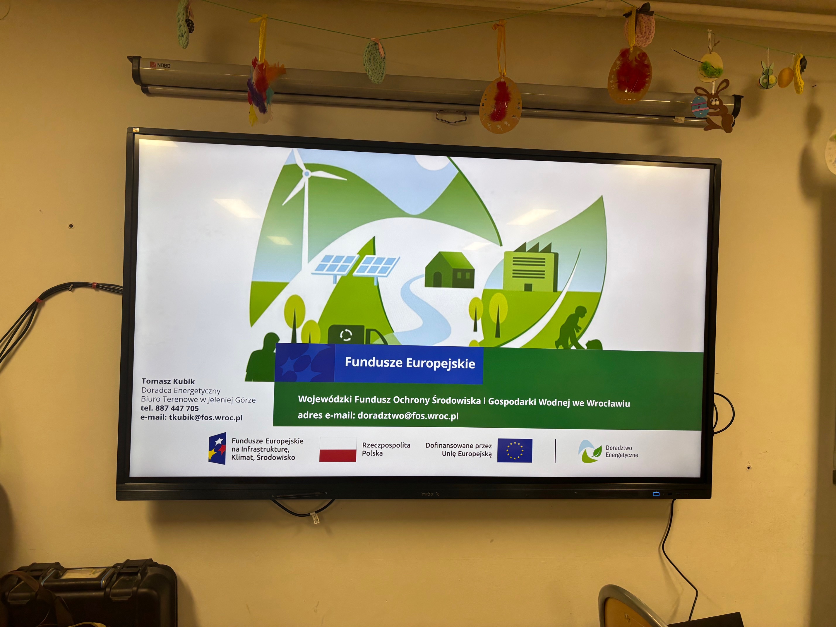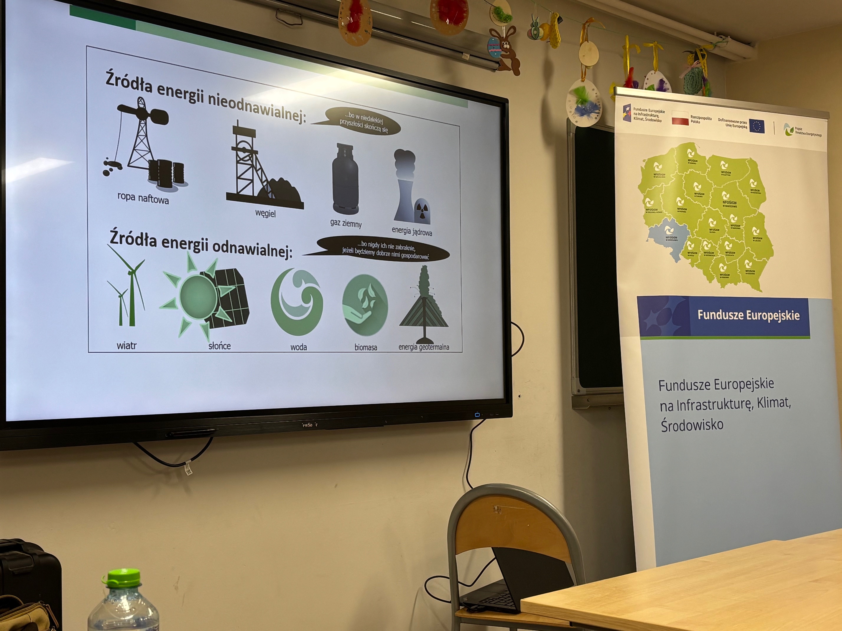 W dniu 10 kwietnia 2026 r. uczniowie kl. 7a i 7b wzięli udział w warsztatach, które zostały przeprowadzone przez doradcę energetycznego WFOŚiGW. Zajęcia odbyły się stacjonarnie w siedzibie naszej szkoły i były poświęcone pozyskiwaniu energii z OZE, ochronie środowiska, zrównoważonemu rozwojowi, segregowaniu odpadów i transformacji energetycznej - w dostosowanej formie do grupy wiekowej uczniów. Warsztaty zostały zorganizowane w ramach szerzenia wiedzy dotyczącej klimatu i środowiska przez Wojewódzki Fundusz Ochrony Środowiska i Gospodarki Wodnej we Wrocławiu.