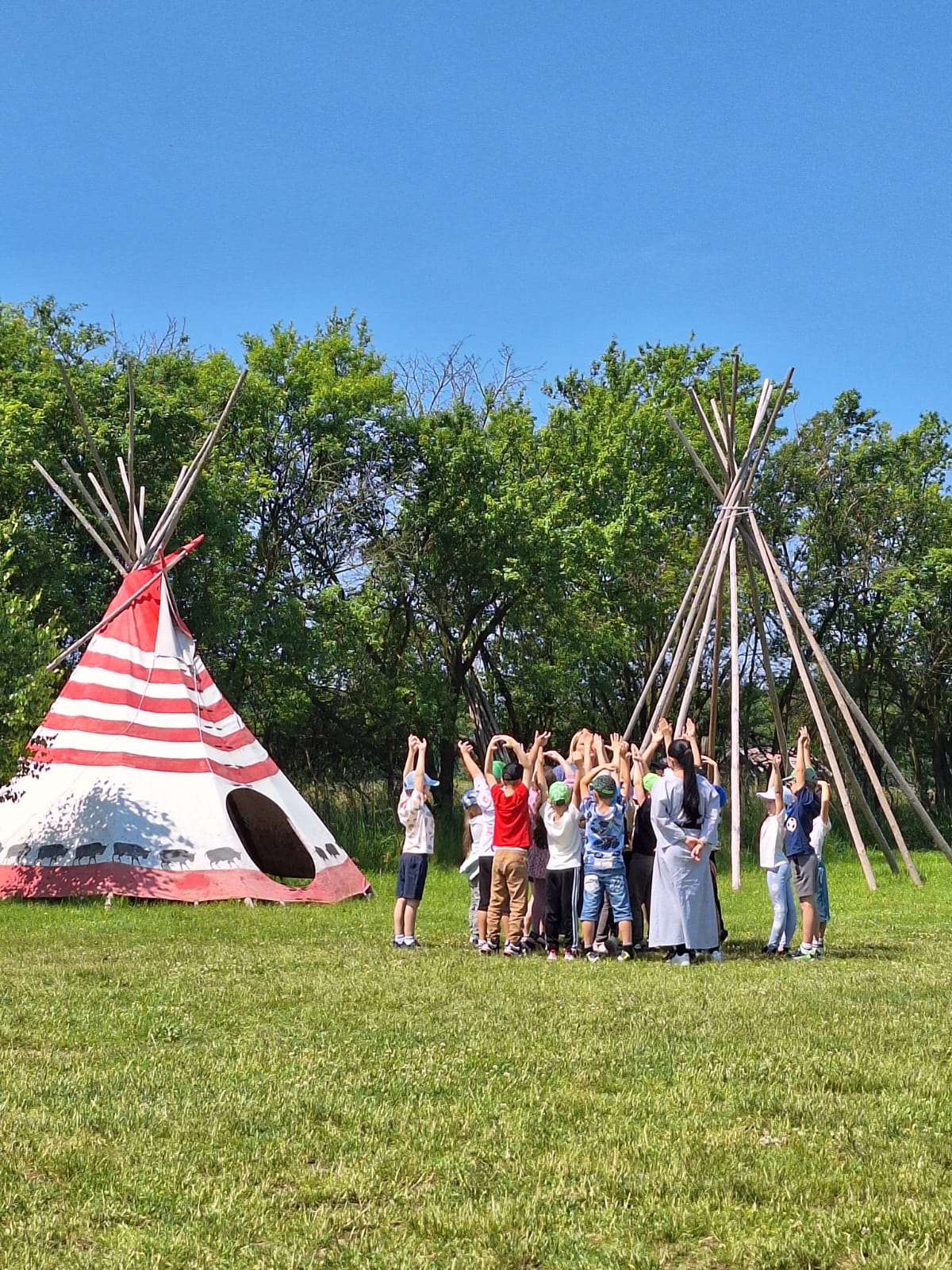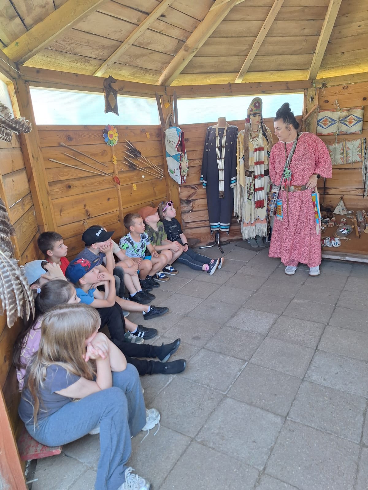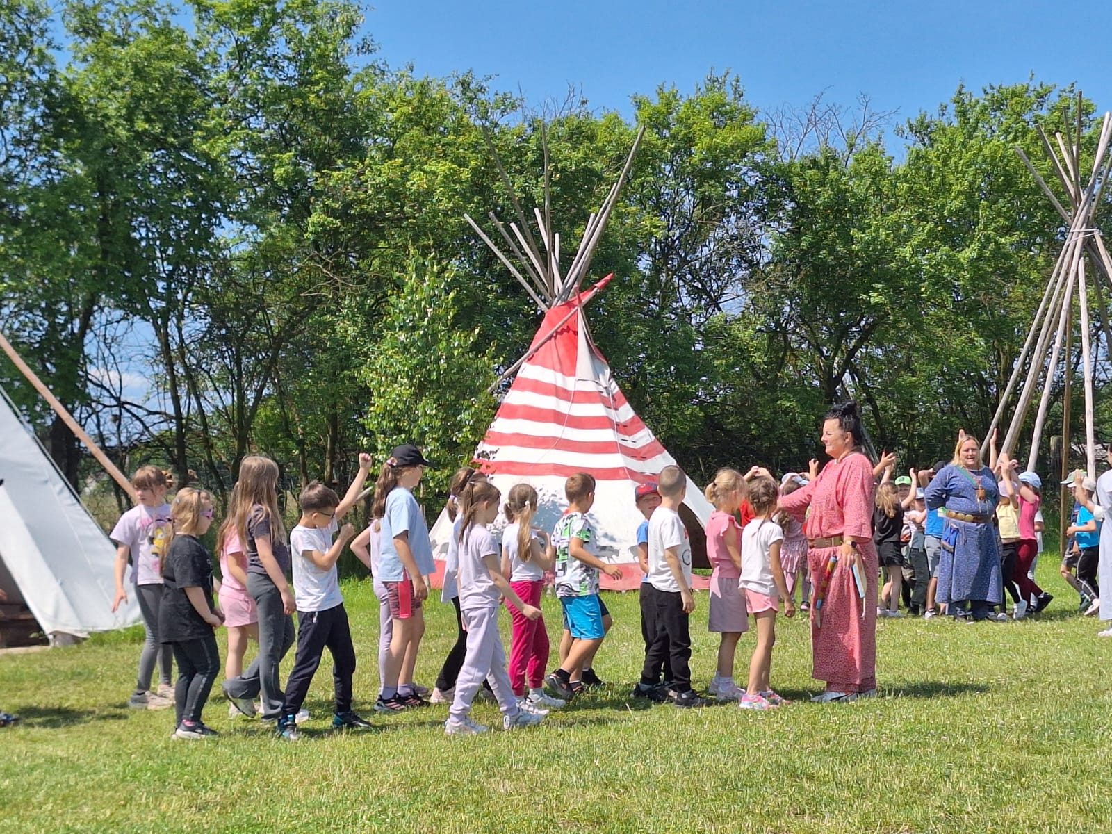 Dnia 12 czerwca 2025 r. uczniowie klas pierwszych naszej szkoły odwiedzili Wioskę Indiańską w Ostaszowie. Dzieci poznały indiańskie zwyczaje, nauczyły się strzelać z łuku i pokonywać przeszkody w terenie. Uczniowie mieli okazję nakarmić zwierzęta hodowlane, a na koniec wycieczki zjedli szybki posiłek - smacznego hot-doga w prawdziwie indiańskim stylu. Pogoda dopisała i humory też!