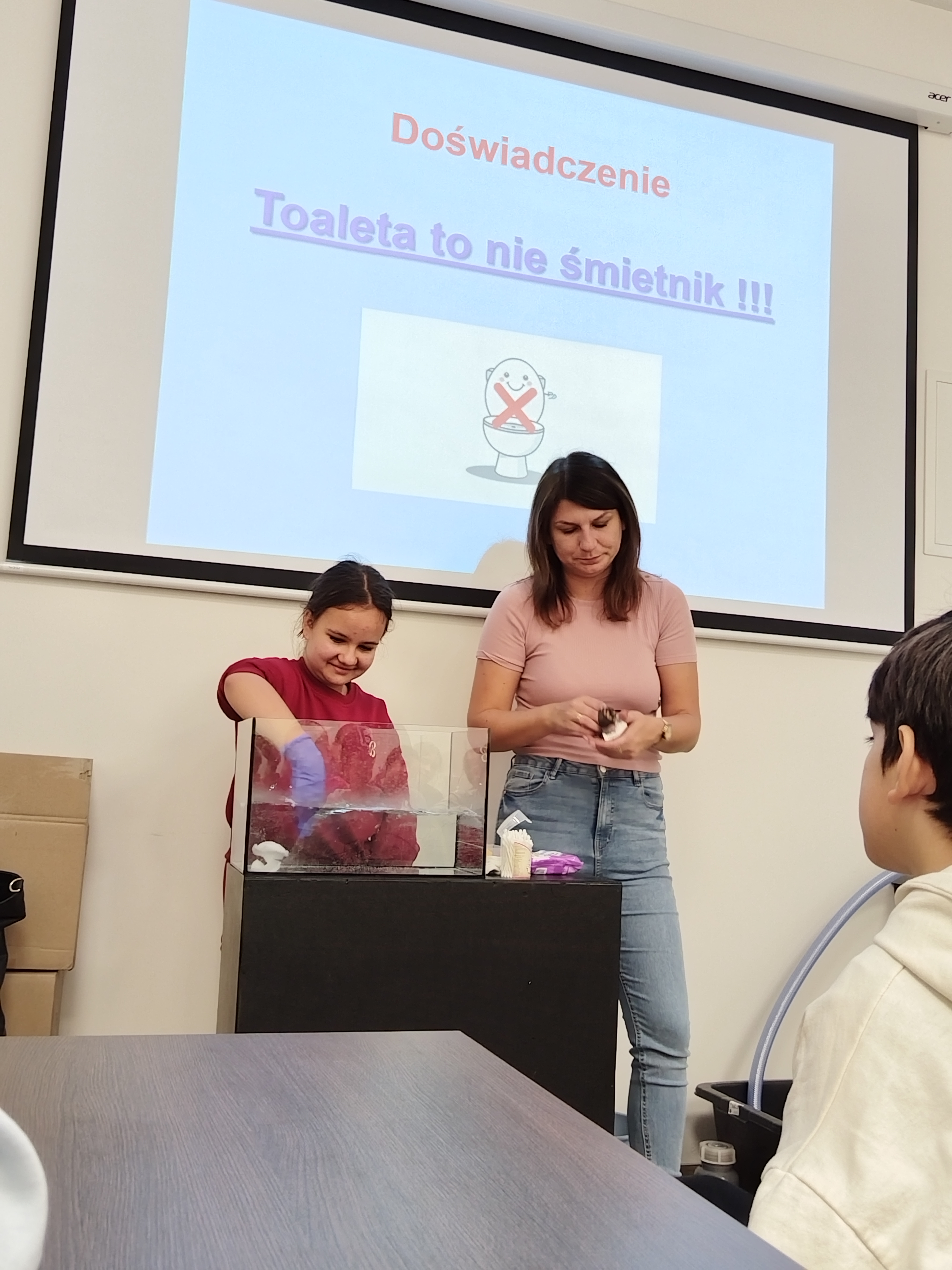 Dnia 22 września 2025 r. uczniowie klasy 3a naszej szkoły wzięli udział w warsztatach edukacyjnych „Woda - źródło życia, czyli z PWiK’iem o wodzie, ściekach i zielonej energii”, których organizatorem byli pracownicy PWiK w Bolesławcu. Trzecioklasiści w ciekawy sposób dowiedzieli się, skąd bierze się woda w kranie, czy można ją pić i co dzieje się ze ściekami.