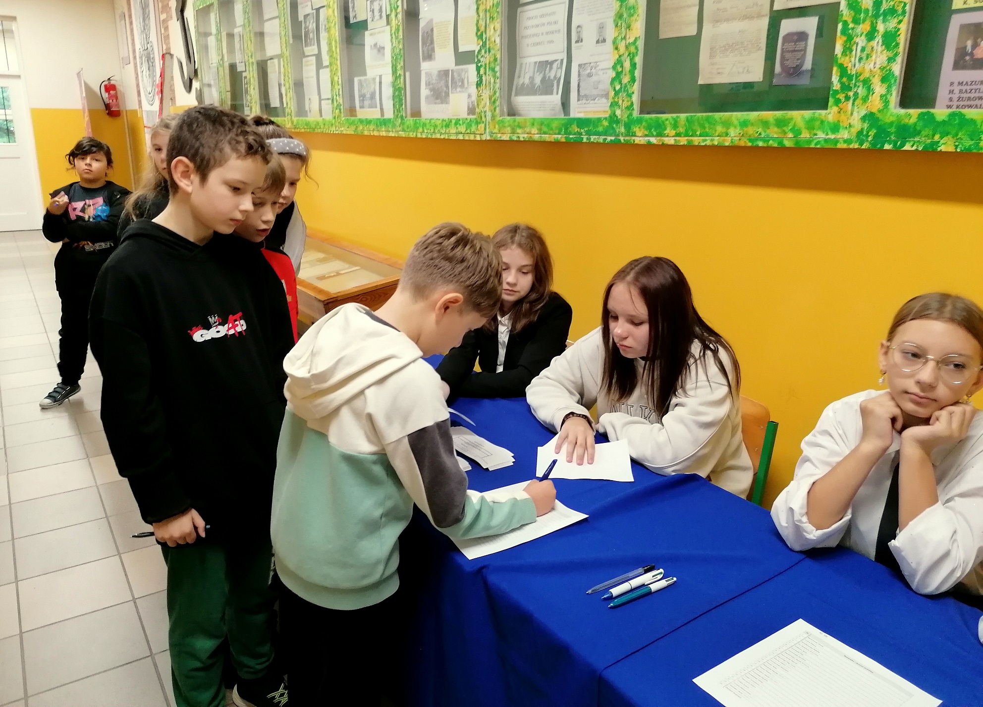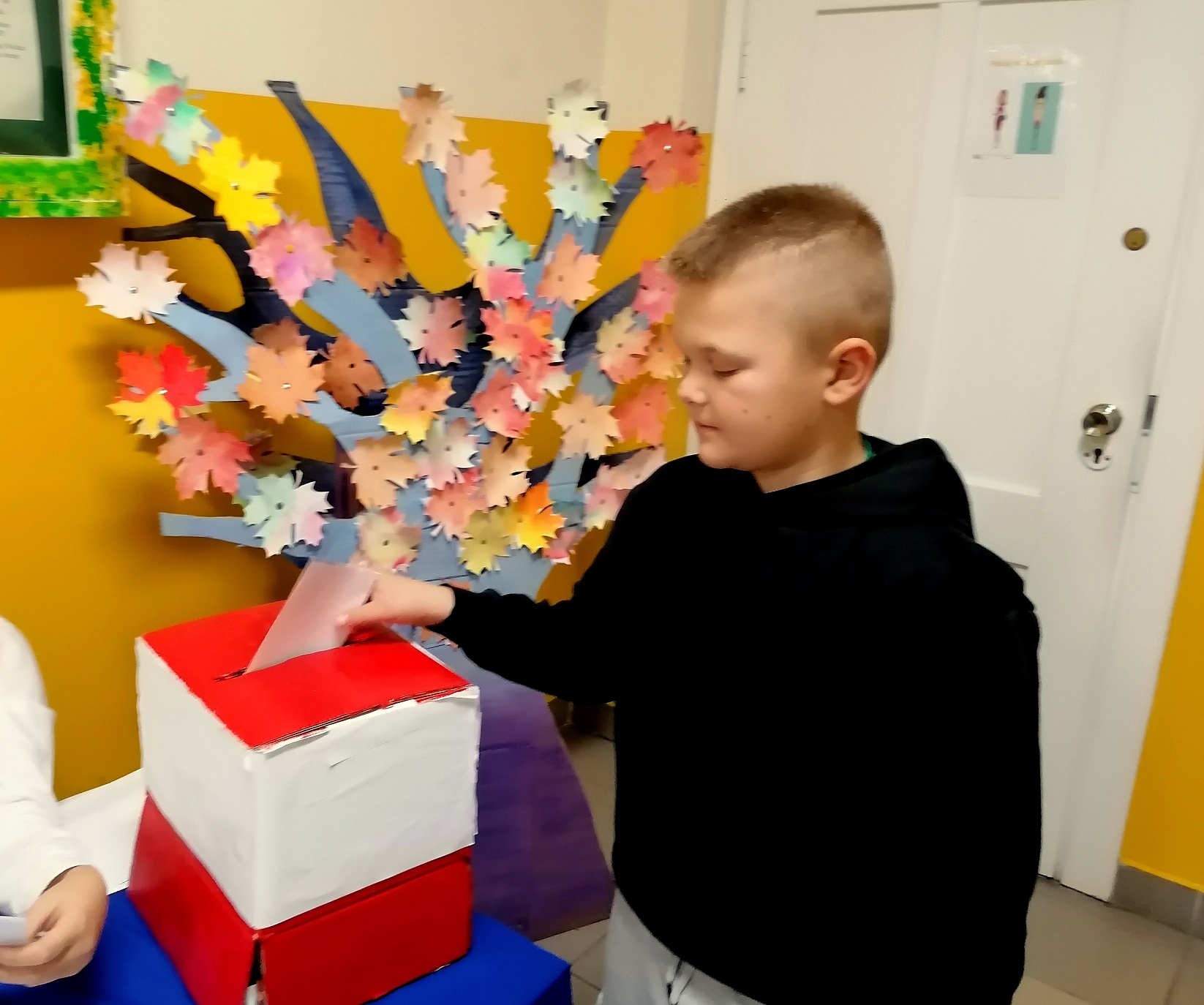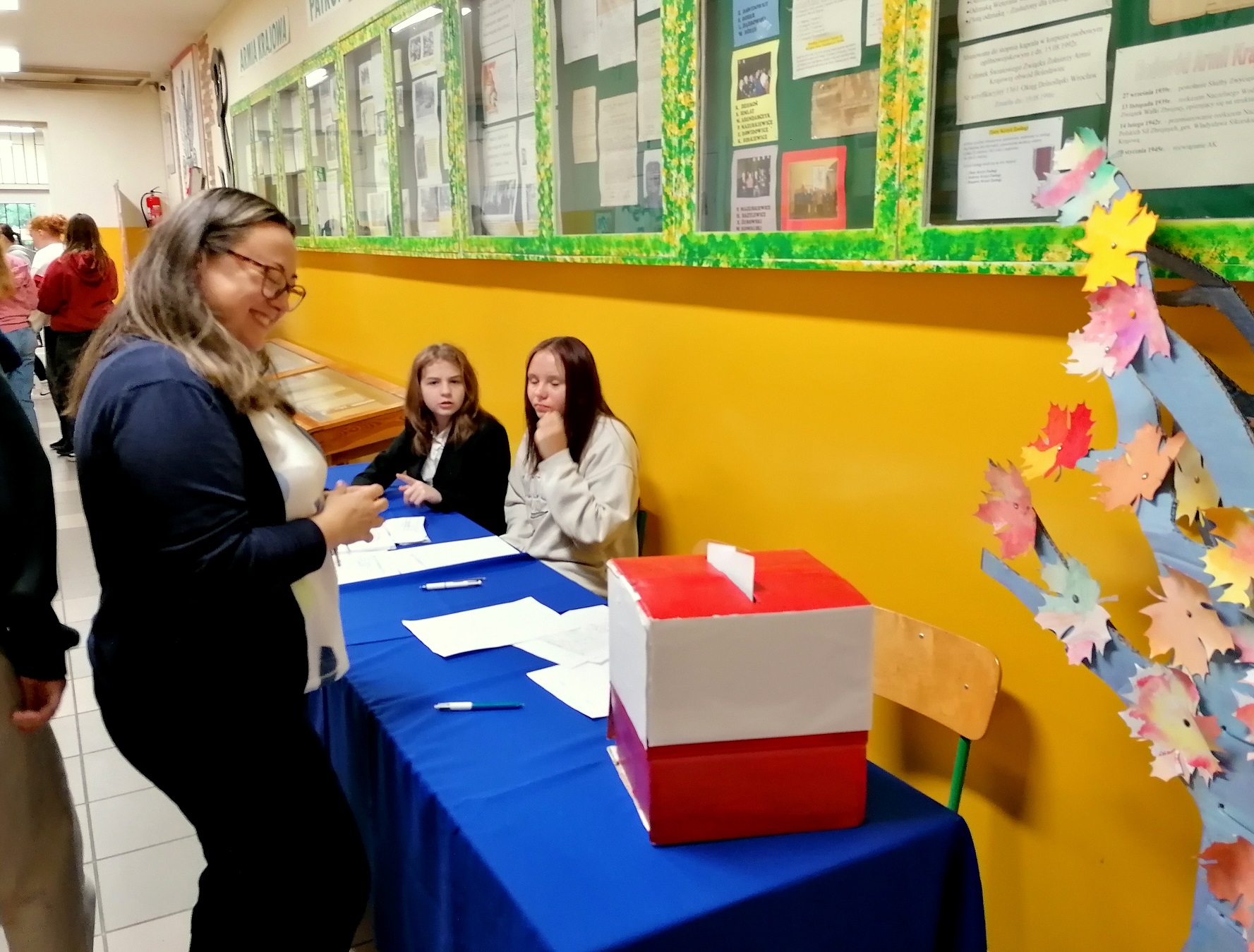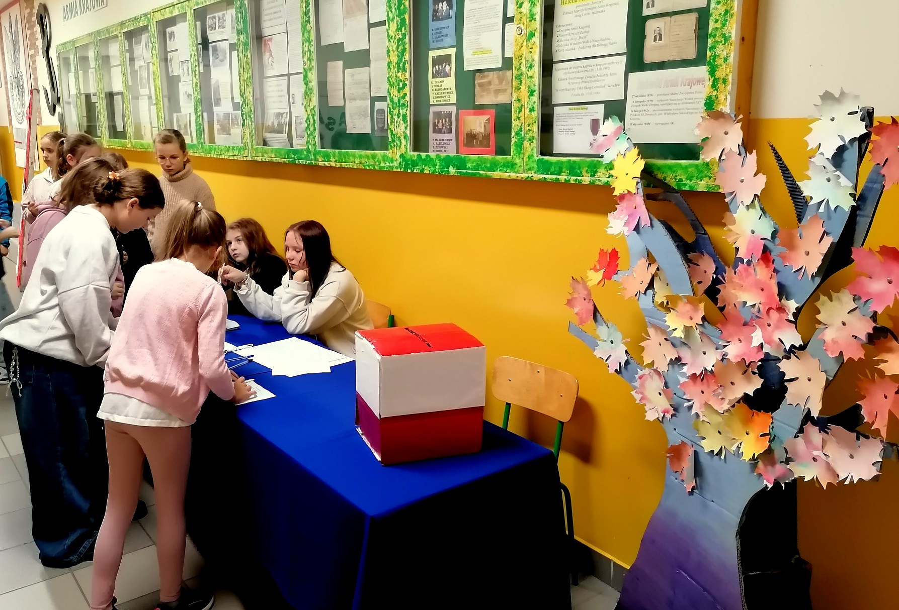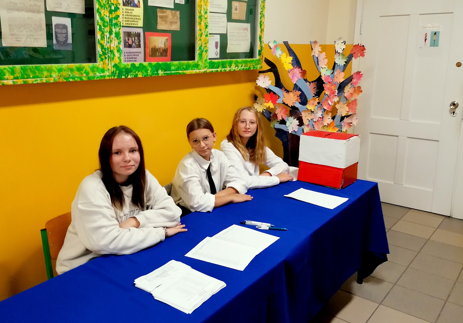 Szkolne wybory na opiekuna Samorządu Uczniowskiego odbyły się dnia 9 października 2025 r. O prawidłowy przebieg wyborów zadbały uczennice klas siódmych wchodzące w skład Komisji Wyborczej: Bianka Wilisowska - przewodnicząca, Dominika Martynowska - zastępca oraz członkowie komisji: Mariia Kachur i Julia Rejman.