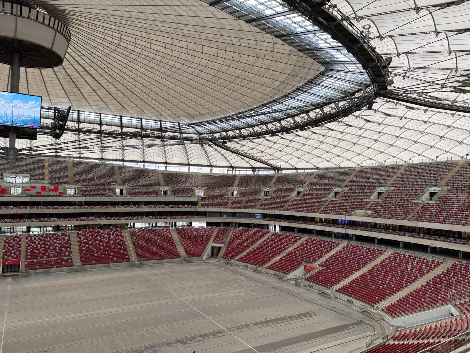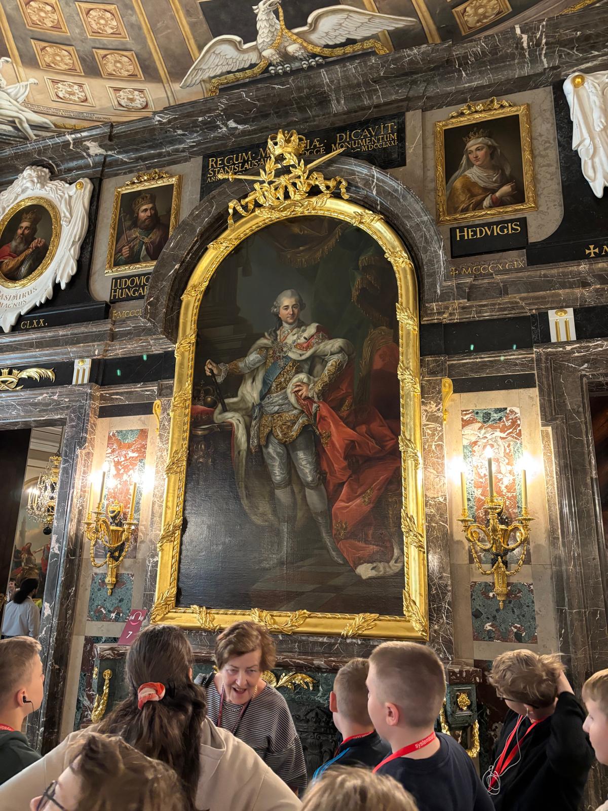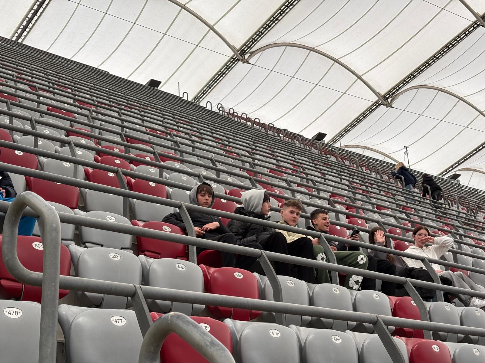 Kolejny dzień rozpoczęliśmy od wizyty w Sejmie RP. W tarkcie zwiedzania nasi uczniowie wysłuchali wykładu na temat historii polskiego parlamentaryzmu oraz poznali jego dzieje współczesne. Pani przewodnik w niezwykle ciekawy sposób opowiedziała nam o pracy posłów oraz oprowadziła po gmachu Sejmu. Uczniowie mieli okazję zasiąść w ławach Sali Posiedzeń, odwiedzili Senat, a także Hall Główny. Kolejnym elementem było zwiedzanie Zamku Królewskiego w Warszawie, gdzie mogliśmy podzwiać wnętrza i ekspozycje muzealne, a także poznać historię Zamku. Zachwyciły nas przede wszystkim: bogate i pełne przepychu Apartamenty Królewskie oraz kolekcja sztuki Zamku - mieszcząca się w Galerii Arcydzieł. Pózniej wyruszyliśmy w kierunku Stadionu PGE Narodowego. Duże wrażenie zrobiła na nas wielkość tego obiektu oraz spora liczba schodów do pokonania. W końcu dotarliśmy na punkt widokowy, z którego mogliśmy podziwiać całą panoramę stadionu.