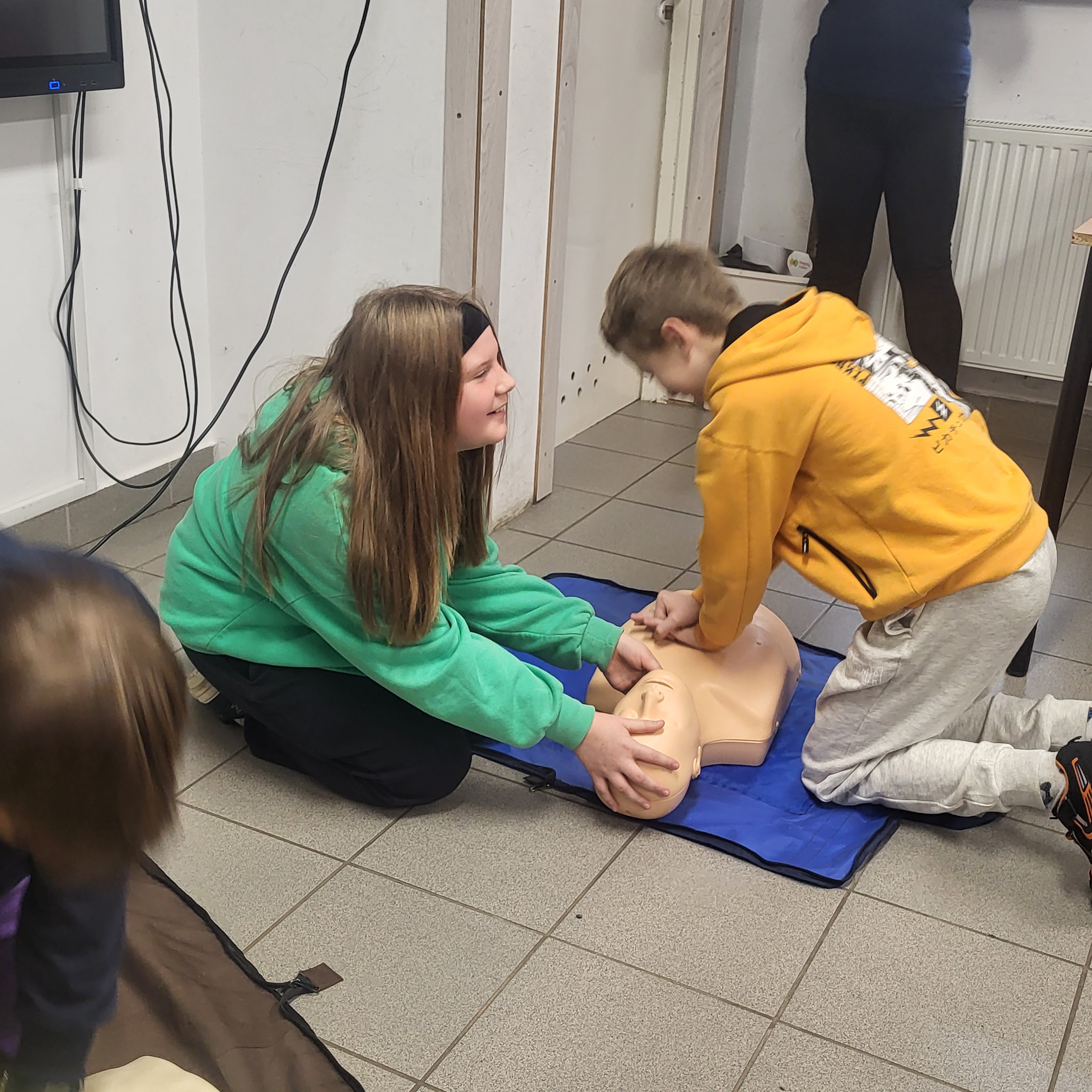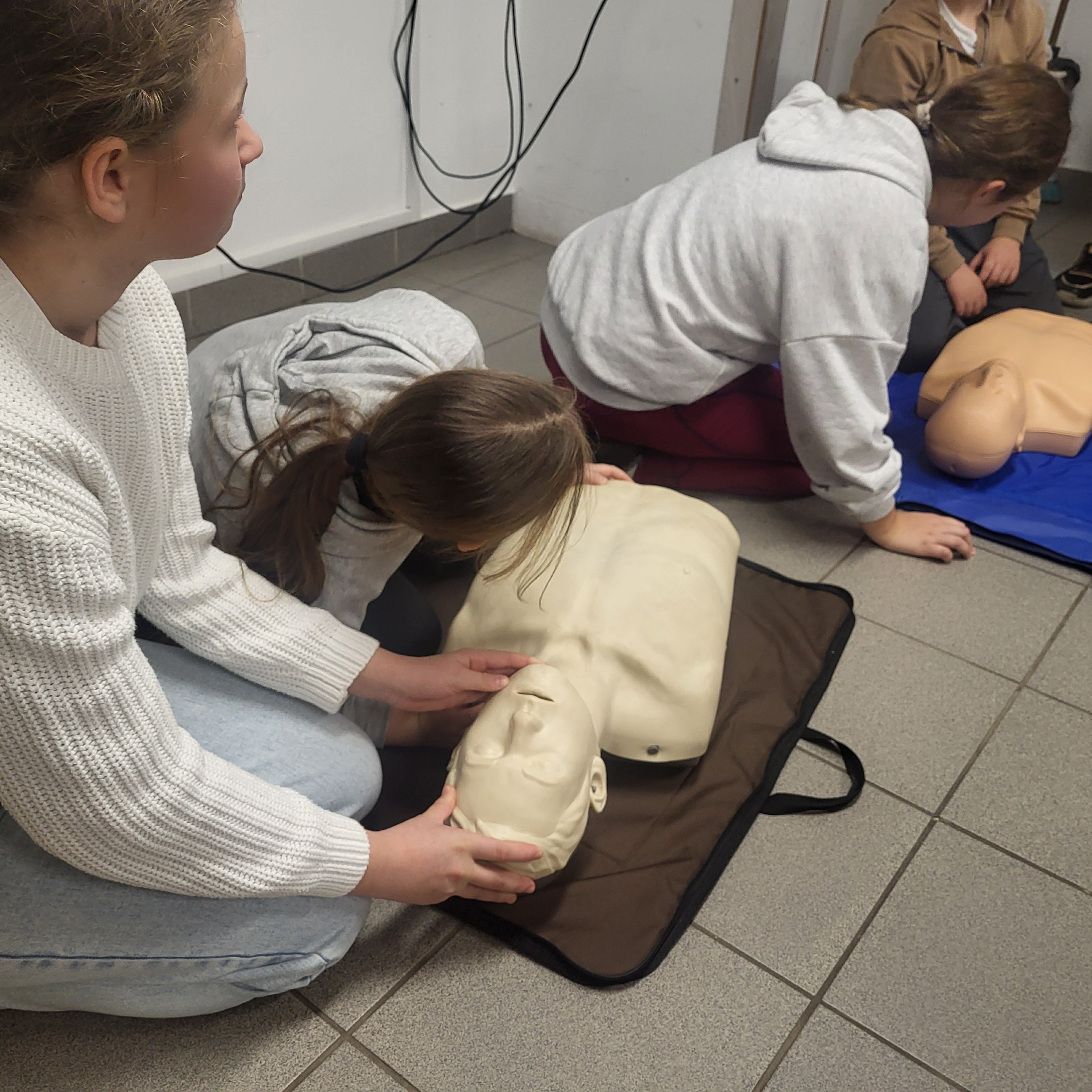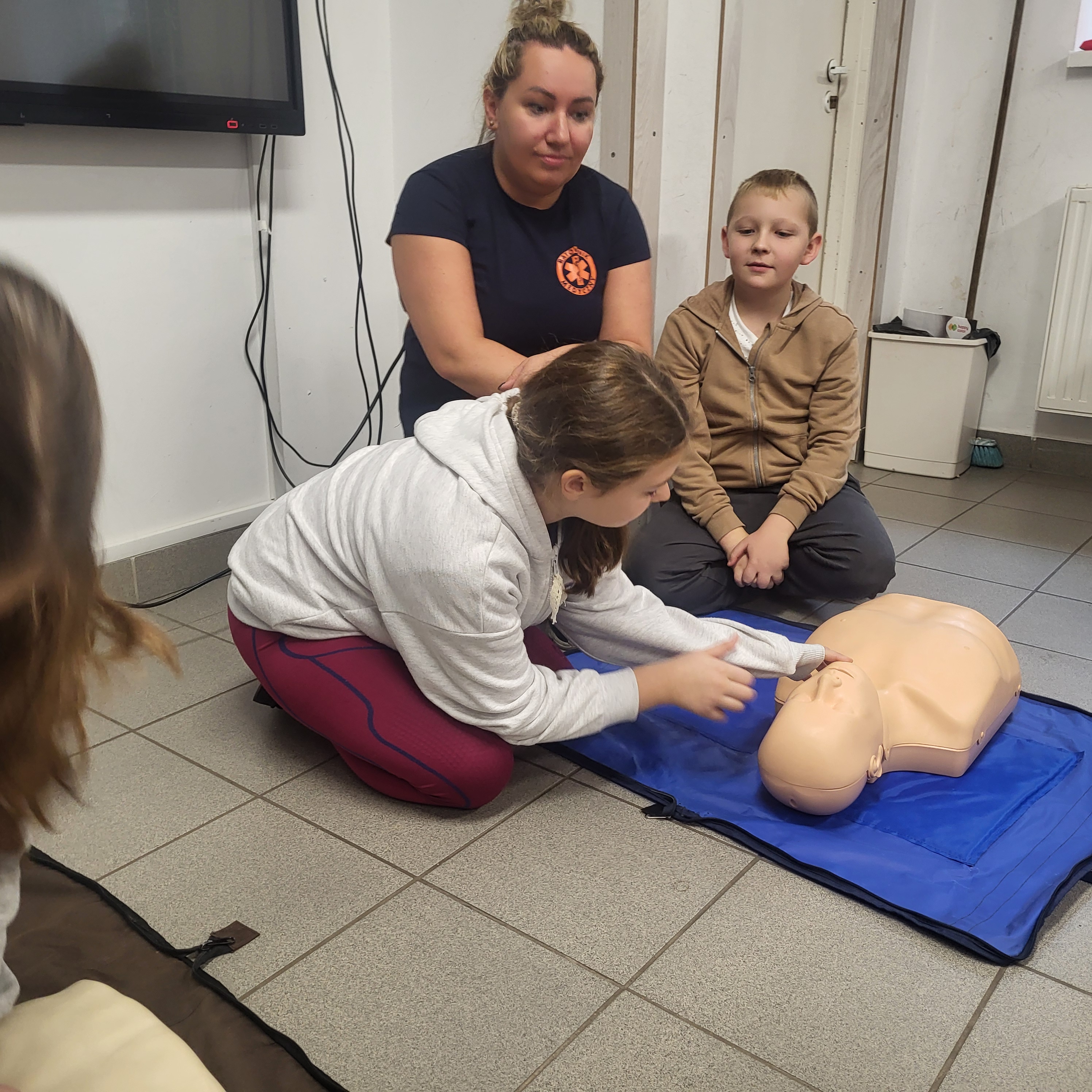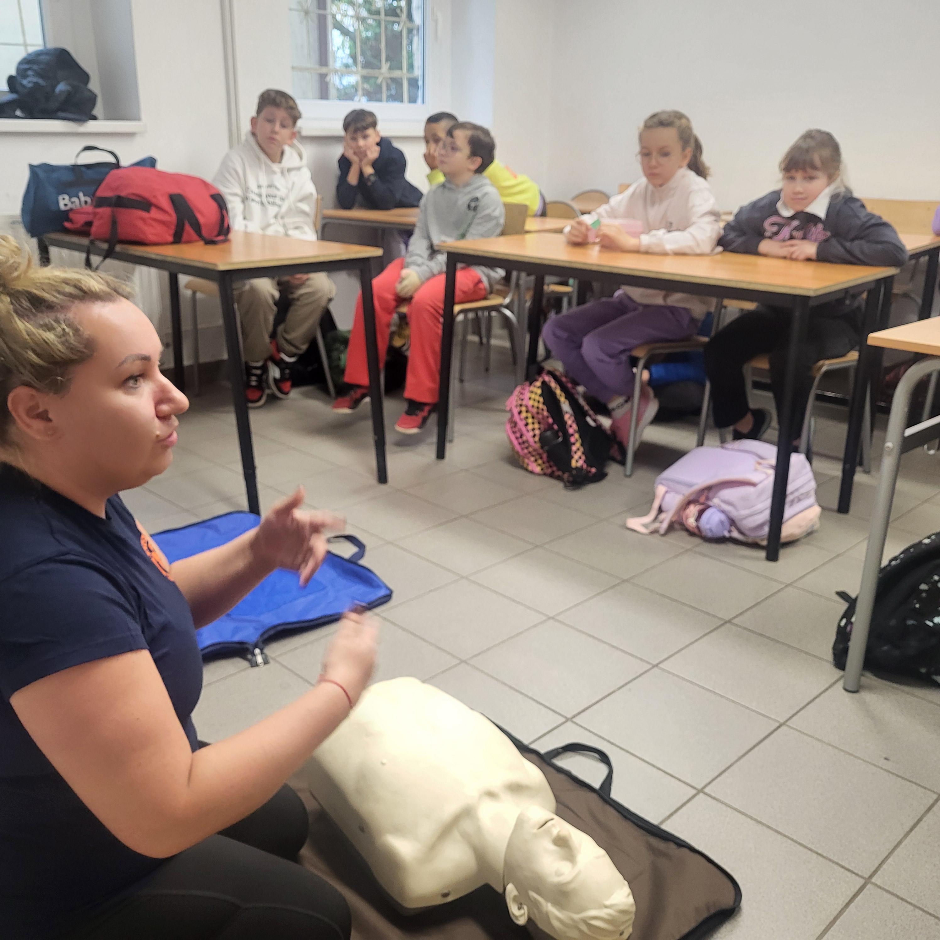 Dnia 3 listopada 2025 r. w ramach zajęć godziny wychowawczej uczniów klasy 4a odwiedziła pani Wioleta Paprot, która jest wieloletnią ratowniczką medyczną. Pani Wioleta przypomniała uczniom podstawowe zasady udzielania pierwszej pomocy dorosłym oraz dzieciom. Uczniowie mieli możliwość przećwiczenia i utrwalenia prawidłowych zachowań na przyniesionych fantomach. Dzieci poradziły sobie świetnie z tym zadaniem!