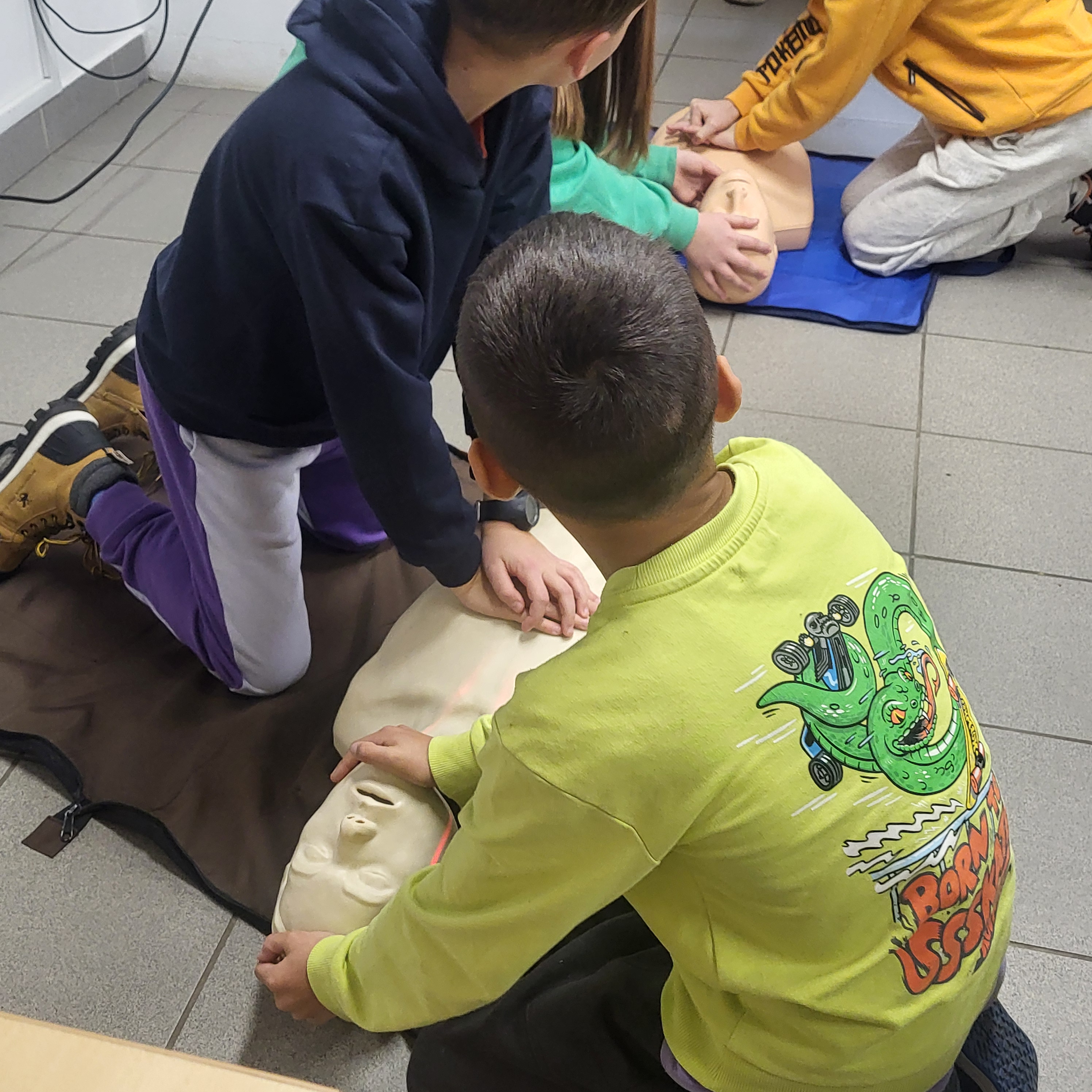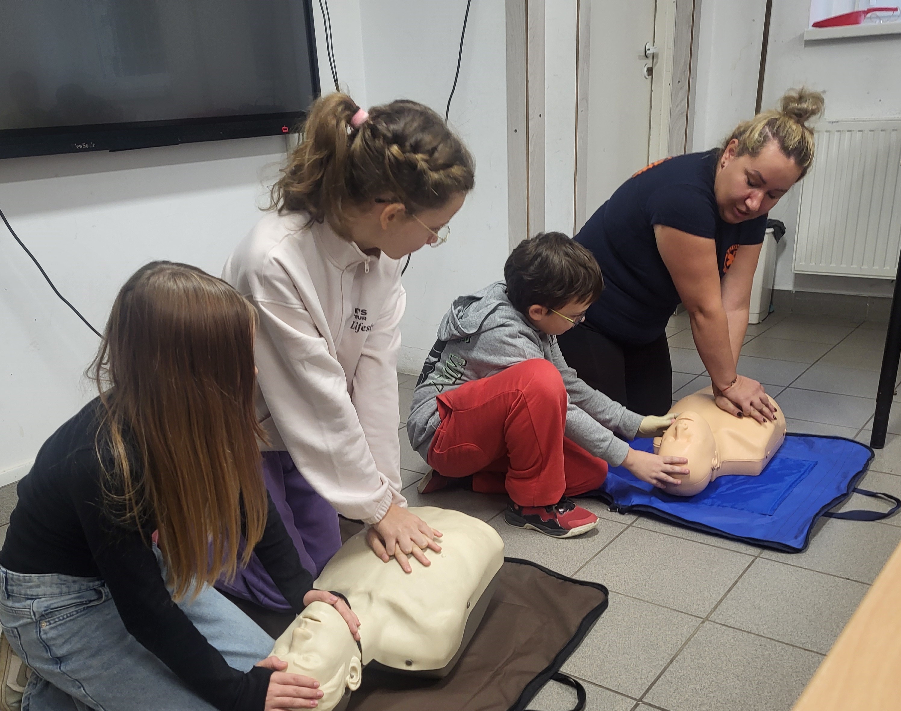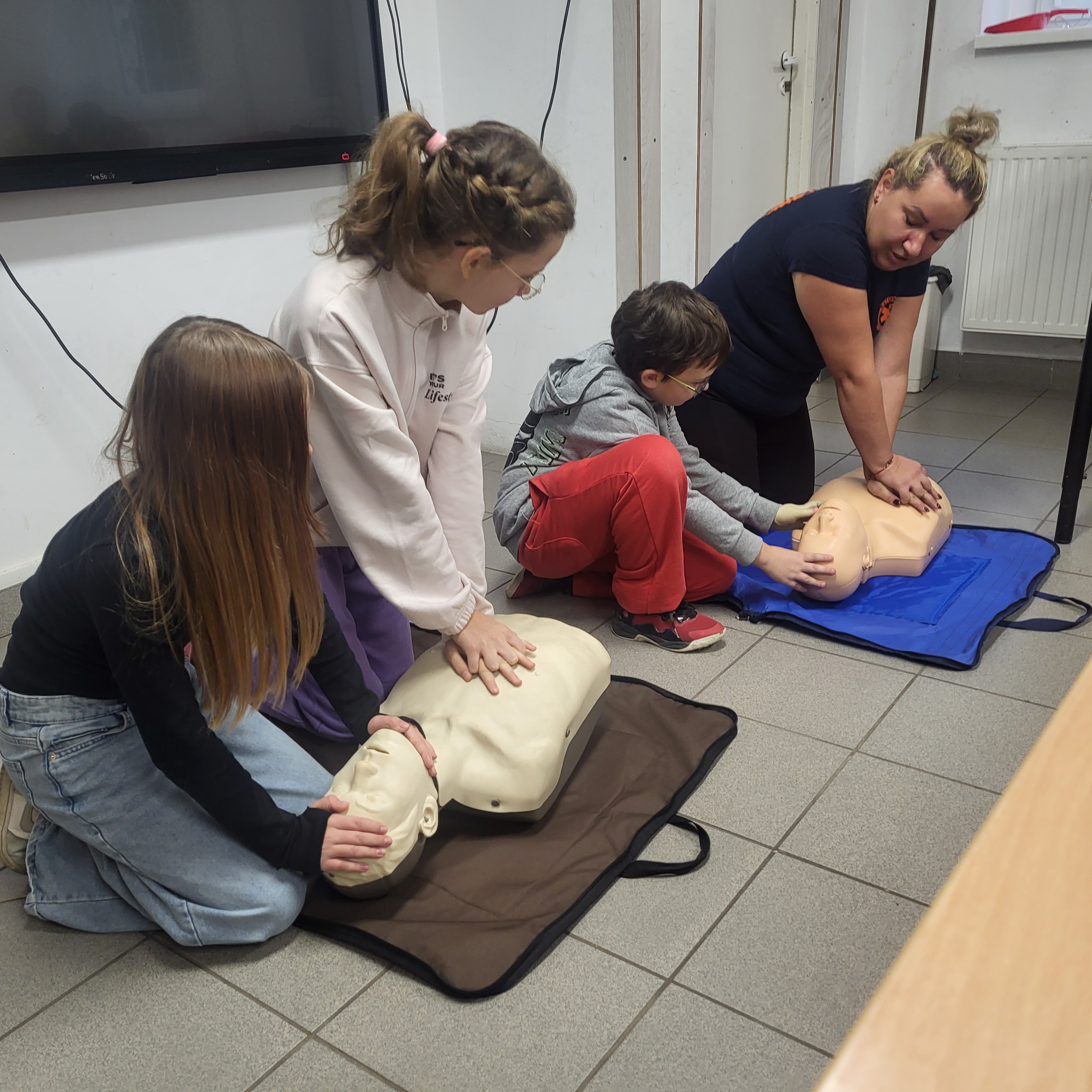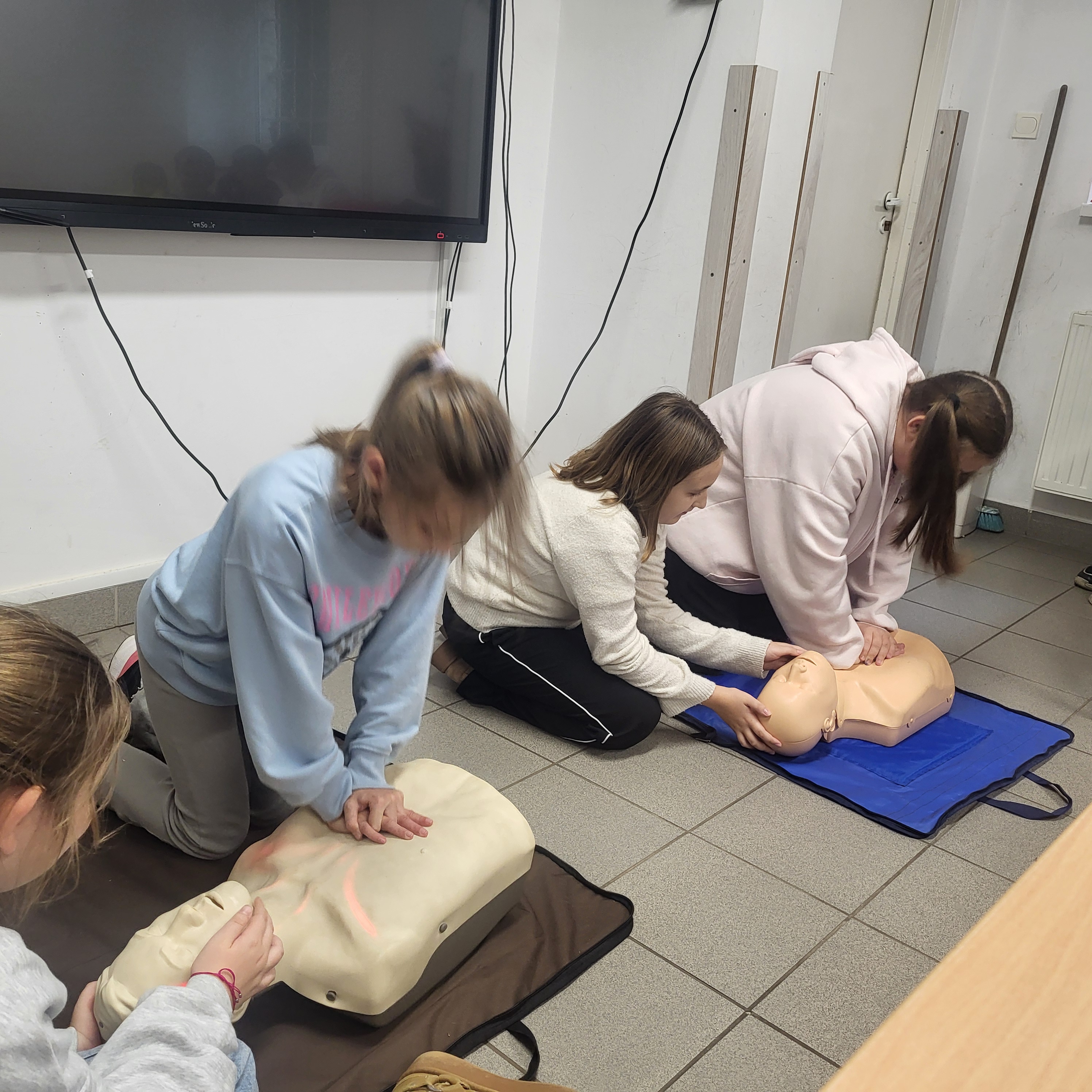 Dnia 3 listopada 2025 r. w ramach zajęć godziny wychowawczej uczniów klasy 4a odwiedziła pani Wioleta Paprot, która jest wieloletnią ratowniczką medyczną. Pani Wioleta przypomniała uczniom podstawowe zasady udzielania pierwszej pomocy dorosłym oraz dzieciom. Uczniowie mieli możliwość przećwiczenia i utrwalenia prawidłowych zachowań na przyniesionych fantomach. Dzieci poradziły sobie świetnie z tym zadaniem!